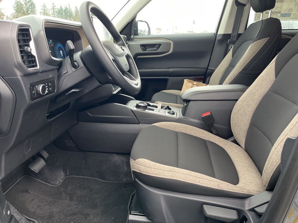 This 2025 Ford Bronco Sport comes equipped with, Auto High-beam Headlights, Brake assist, Equipment Group 200A, First Aid Kit, Heated door mirrors, Rear Parking Sensors, SYNC 4 w/Enhanced Voice Recognition, 4-Wheel Disc Brakes, 6 Speakers, ABS brakes, Air Conditioning, Alloy wheels, AM/FM radio: SiriusXM, AM/FM Stereo, Automatic temperature control, Cloth w/Easy-to-Clean Front Bucket Seats, Compass, Delay-off headlights, Driver door bin, Driver vanity mirror, Dual front impact airbags, Dual front side impact airbags, Electronic Stability Control, Emergency communication system: SYNC 4 911 Assist, Four wheel independent suspension, Front anti-roll bar, Front Bucket Seats, Front Center Armrest, Front reading lights, Fully automatic headlights, Illuminated entry, Knee airbag, Low tire pressure warning, Occupant sensing airbag, Outside temperature display, Overhead airbag, Overhead console, Panic alarm, Passenger door bin, Passenger vanity mirror, Power door mirrors, Power steering, Power windows, Radio data system, Rear anti-roll bar, Rear reading lights, Rear seat center armrest, Rear window defroster, Rear window wiper, Remote keyless entry, Security system, SiriusXM, Speed control, Speed-sensing steering, Speed-Sensitive Wipers, Split folding rear seat, Steering wheel mounted audio controls, Tachometer, Telescoping steering wheel, Tilt steering wheel, Traction control, Trip computer, Variably intermittent wipers, Wheels: 17 Carbonized Gray-Painted Aluminum, Auto High-beam Headlights, Brake assist, Equipment Group 200A, First Aid Kit, Heated door mirrors, Rear Parking Sensors, SYNC 4 w/Enhanced Voice Recognition. Carbonized Gray Metallic 2025 Ford Bronco Sport Big Bend 4WD 8-Speed Automatic 1.5L EcoBoost