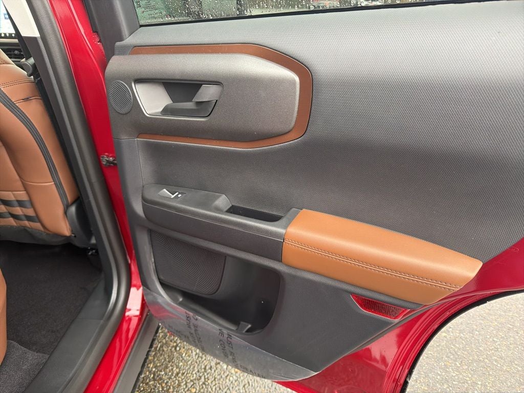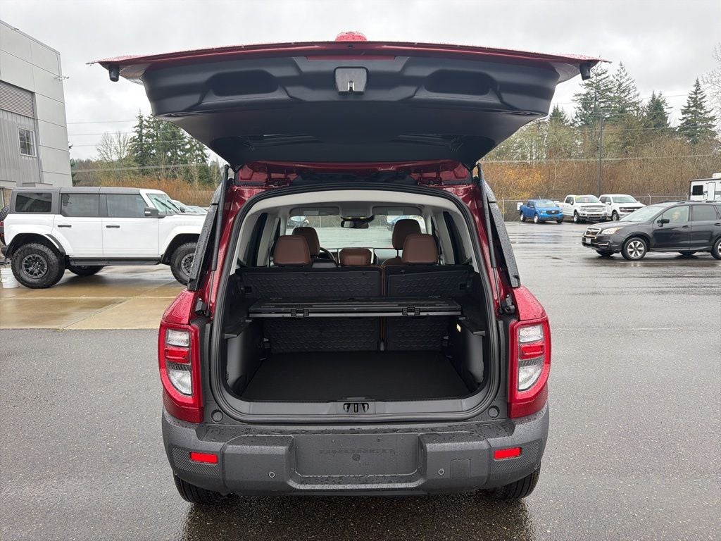 This 2025 Ford Bronco Sport comes equipped with, Equipment Group 300A, First Aid Kit, 4-Wheel Disc Brakes, 6 Speakers, ABS brakes, Air Conditioning, Alloy wheels, AM/FM radio: SiriusXM, AM/FM Stereo, Auto High-beam Headlights, Auto-dimming Rear-View mirror, Automatic temperature control, Brake assist, Compass, Delay-off headlights, Driver door bin, Driver vanity mirror, Dual front impact airbags, Dual front side impact airbags, Electronic Stability Control, Emergency communication system: SYNC 4 911 Assist, Four wheel independent suspension, Front anti-roll bar, Front Bucket Seats, Front Center Armrest, Front Driver/Passenger Seat Back Map Pockets, Front dual zone A/C, Front fog lights, Front reading lights, Fully automatic headlights, Garage door transmitter, Heated door mirrors, Heated front seats, Heated steering wheel, Illuminated entry, Knee airbag, Low tire pressure warning, Memory seat, Occupant sensing airbag, Outside temperature display, Overhead airbag, Overhead console, Panic alarm, Passenger door bin, Passenger vanity mirror, Power door mirrors, Power driver seat, Power passenger seat, Power steering, Power windows, Premium Trimmed Front Bucket Seats w/Ebony/Roast, Radio data system, Rain sensing wipers, Rear anti-roll bar, Rear Parking Sensors, Rear reading lights, Rear seat center armrest, Rear window defroster, Rear window wiper, Remote keyless entry, Security system, SiriusXM, Speed control, Speed-sensing steering, Speed-Sensitive Wipers, Split folding rear seat, Steering wheel mounted audio controls, SYNC 4 w/Enhanced Voice Recognition, Tachometer, Telescoping steering wheel, Tilt steering wheel, Traction control, Trip computer, Variably intermittent wipers, Wheels: 18 Ebony Black-Painted Aluminum, Equipment Group 300A, First Aid Kit. 2025 Ford Bronco Sport Outer Banks 4WD 8-Speed Automatic 1.5L EcoBoost