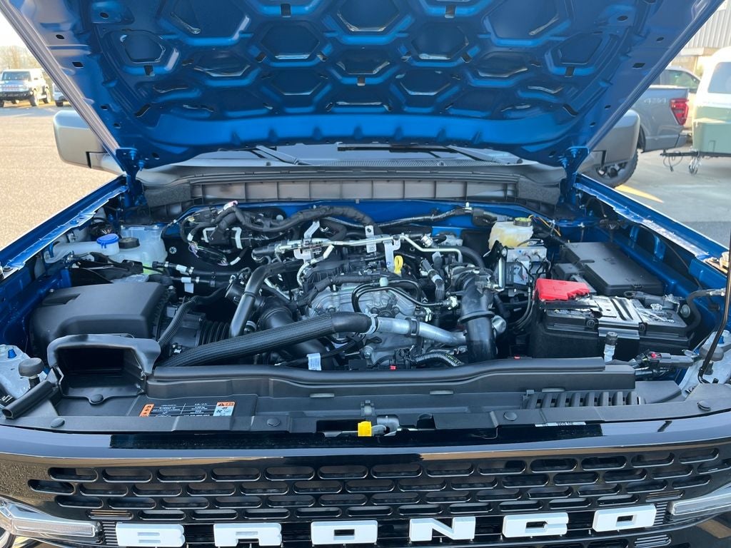This 2025 Ford Bronco comes equipped with, 2-Door Intelligent Access w/Lock/Unlock, 7 Speakers, Ambient Footwell Lighting, Auto High-beam Headlights, Black Appearance Package, Black Diamond Graphics Package, Black Molded-In-Color Door Handles, Black Molded-In-Color Fender Flares, Black Molded-In-Color Sideview Mirror Caps, Black-Painted Molded-In-Color Grille, Brake assist, Connected Navigation, Dr & Pass Illuminated Sliding Visor Vanity Mirrors, Dual Smart Charging USB Ports, Dual-Zone Electronic Automatic Temperature Control, Equipment Group 222A Mid Package, Front Row Heated Seats, Hard Top Sound Deadening Headliner, Heated door mirrors, Illuminated entry, Navigation System, Power Outlet - Back Side of Center Floor Console, Rear Parking Sensors, Wheels: 17 Black High Gloss-Painted Aluminum, 4-Wheel Disc Brakes, 4.46 Axle Ratio, ABS brakes, Air Conditioning, Alloy wheels, AM/FM radio: SiriusXM with 360L, AM/FM Stereo, Cloth Bucket Seats, Compass, Delay-off headlights, Driver door bin, Driver vanity mirror, Dual front impact airbags, Dual front side impact airbags, Electronic Stability Control, Emergency communication system: 911 Assist, Exterior Parking Camera Rear, Front anti-roll bar, Front Bucket Seats, Front Center Armrest, Front reading lights, Front wheel independent suspension, Fully automatic headlights, Integrated roll-over protection, Leather Shift Knob, Low tire pressure warning, Occupant sensing airbag, Outside temperature display, Overhead airbag, Overhead console, Panic alarm, Passenger door bin, Passenger vanity mirror, Power door mirrors, Power steering, Power windows, Radio data system, Remote keyless entry, Security system, SiriusXM w/360L, Speed control, Split folding rear seat, Steering wheel mounted audio controls, SYNC 4, Tachometer, Telescoping steering wheel, Tilt steering wheel, Traction control, Trip computer, Variably intermittent wipers, Wheels: 17 Carbonized Gray-Painted Aluminum, HARD TOP, BLACK-PAINTED, 2-Door Intelligent Access w/Lock/Unlock, 7 Speakers, Ambient Footwell Lighting, Auto High-beam Headlights, Black Appearance Package, Black Diamond Graphics Package, Black Molded-In-Color Door Handles, Black Molded-In-Color Fender Flares, Black Molded-In-Color Sideview Mirror Caps, Black-Painted Molded-In-Color Grille, Brake assist, Connected Navigation, Dr & Pass Illuminated Sliding Visor Vanity Mirrors, Dual Smart Charging USB Ports, Dual-Zone Electronic Automatic Temperature Control, Equipment Group 222A Mid Package, Front Row Heated Seats, Hard Top Sound Deadening Headliner, Heated door mirrors, Illuminated entry, Navigation System, Power Outlet - Back Side of Center Floor Console, Rear Parking Sensors, Wheels: 17 Black High Gloss-Painted Aluminum. Velocity Blue Metallic 2025 Ford Bronco Big Bend 4WD 10-Speed Automatic 2.3L EcoBoost I-4