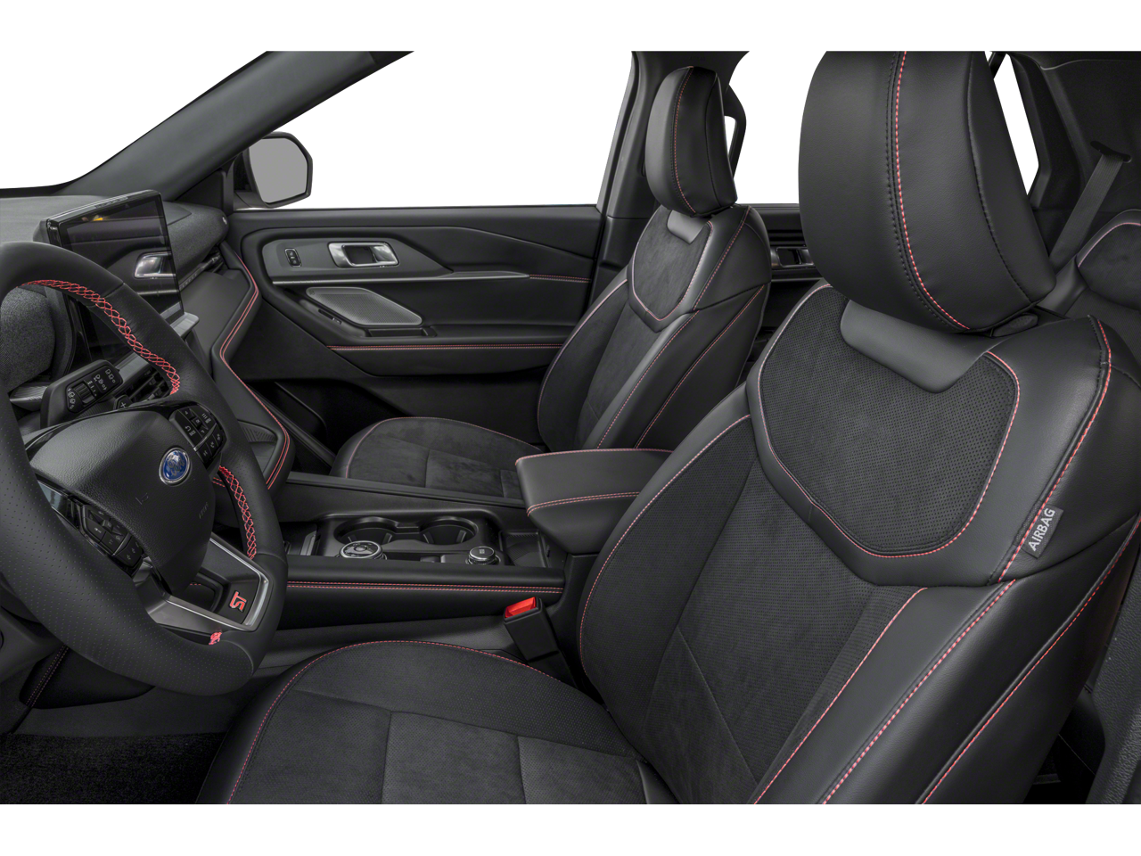 This 2025 Ford Explorer comes equipped with, 4WD, 10 Speakers, 3.58 Non-Limited Slip Rear Axle, 3rd row seats: bench, 4-Wheel Disc Brakes, ABS brakes, Air Conditioning, Alloy wheels, AM/FM radio: SiriusXM with 360L, Apple CarPlay/Android Auto, Auto High-beam Headlights, Auto-dimming door mirrors, Auto-dimming Rear-View mirror, Automatic temperature control, B&O Sound System by Bang & Olufsen, Brake assist, Bumpers: body-color, Compass, Delay-off headlights, Driver door bin, Driver vanity mirror, Dual front impact airbags, Dual front side impact airbags, Electronic Stability Control, Emergency communication system: 911 Assist, Equipment Group 400A Standard Package, Exterior Parking Camera Rear, Four wheel independent suspension, Front anti-roll bar, Front Bucket Seats, Front Center Armrest, Front dual zone A/C, Front fog lights, Front License Plate Bracket, Front reading lights, Fully automatic headlights, Garage door transmitter, Heated door mirrors, Heated front seats, Heated rear seats, Heated steering wheel, Heated/Ventilated Miko Sport Captain's Chairs, Illuminated entry, Internet access capable: FordPass Connect 5G, Knee airbag, Leather steering wheel, Low tire pressure warning, Memory seat, Multicontour Seats w/Front Active Motion, Navigation System, Occupant sensing airbag, Outside temperature display, Overhead airbag, Overhead console, Panic alarm, Panoramic Vista Roof w/Power Shade, Passenger door bin, Passenger vanity mirror, Power door mirrors, Power driver seat, Power Liftgate, Power passenger seat, Power steering, Power windows, Radio: B&O Sound System by Bang & Olufsen, Rain sensing wipers, Rear air conditioning, Rear anti-roll bar, Rear reading lights, Rear window defroster, Rear window wiper, Remote keyless entry, Security system, Speed control, Speed-sensing steering, Speed-Sensitive Wipers, Split folding rear seat, Spoiler, Sport steering wheel, Steering wheel mounted audio controls, Sun and Sound Package, Tachometer, Telescoping steering wheel, Tilt steering wheel, Traction control, Trip computer, Turn signal indicator mirrors, Variably intermittent wipers, Ventilated front seats, Wheels: 21 Magnetite-Painted Aluminum, 4WD. Red Metallic 2025 Ford Explorer ST 4WD 10-Speed Automatic 3.0L EcoBoost V6