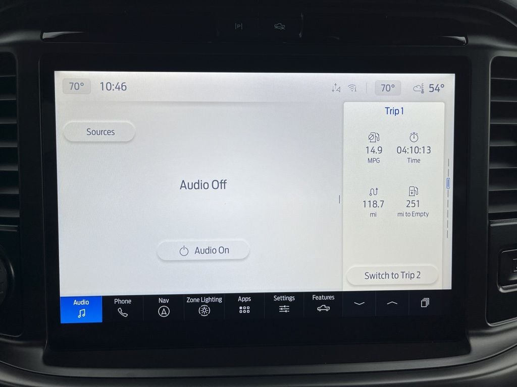 This 2025 Ford F-150 comes equipped with, 4WD, 4-Wheel Disc Brakes, 8 Speakers, ABS brakes, Adjustable pedals, Air Conditioning, Alloy wheels, AM/FM radio: SiriusXM with 360L, Auto High-beam Headlights, Auto-dimming door mirrors, Auto-dimming Rear-View mirror, Automatic temperature control, Brake assist, Bumpers: body-color, Compass, Delay-off headlights, Driver door bin, Driver vanity mirror, Dual front impact airbags, Dual front side impact airbags, Electronic Locking w/3.73 Axle Ratio, Electronic Stability Control, Emergency communication system: SYNC 4 911 Assist, Front anti-roll bar, Front Bucket Seats, Front Center Armrest, Front dual zone A/C, Front fog lights, Front reading lights, Front wheel independent suspension, Fully automatic headlights, GVWR: 7,100 lbs Payload Package, Heated door mirrors, Heated front seats, Illuminated entry, Internet access capable: FordPass Connect 5G, Low tire pressure warning, Navigation system: Connected Navigation, Occupant sensing airbag, Outside temperature display, Overhead airbag, Overhead console, Panic alarm, Passenger door bin, Passenger vanity mirror, Power door mirrors, Power driver seat, Power passenger seat, Power steering, Power windows, Radio data system, Radio: B&O Sound System by Bang & Olufsen, Rear reading lights, Rear step bumper, Rear window defroster, Remote keyless entry, Security system, Speed control, Split folding rear seat, Steering wheel mounted audio controls, SYNC 4 w/Enhanced Voice Recognition, Tachometer, Telescoping steering wheel, Tilt steering wheel, Traction control, Trip computer, Turn signal indicator mirrors, Unique Sport Cloth 40/Console/40 Power Front Seat, Variably intermittent wipers, Voltmeter, Wheels: 18 Alloy w/Dark Matte Finish, 4WD. 2025 Ford F-150 Tremor 4WD 10-Speed Automatic 3.5L V6 EcoBoost