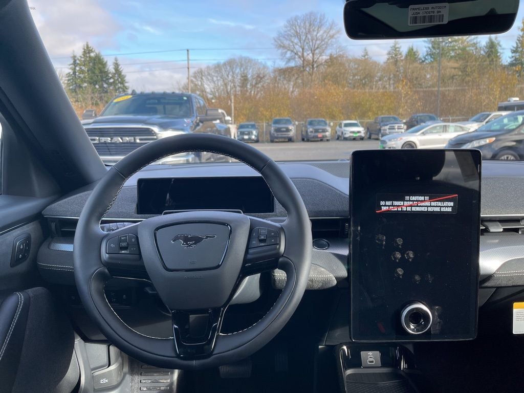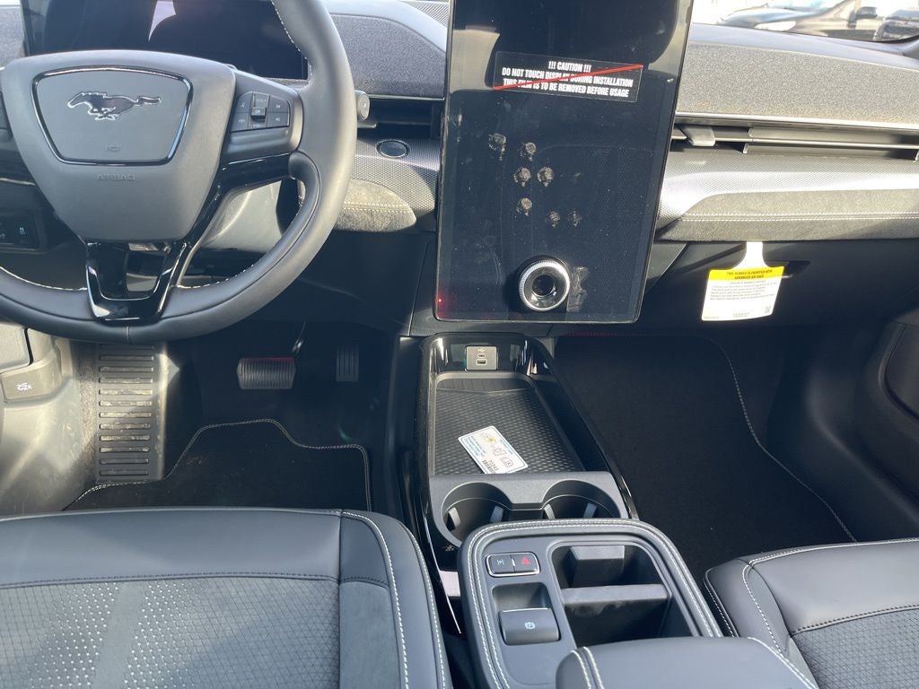 This 2025 Ford Mustang Mach-E comes equipped with, 10 Speakers, Apple CarPlay/Android Auto, Auto High-beam Headlights, Brake assist, Bronze Appearance Package, Bronze Mesh Front Grille Shield, Electronic Stability Control, Equipment Group 400A Standard Package, Exterior Parking Camera Rear, Mach-E 4X Door Badges & Rear GT Badge, Mobile Power Cord (120V/240V), Navigation system: Connected Navigation, Power Liftgate, Radio: B&O Sound System by Bang & Olufsen, Rain sensing wipers, SiriusXM w/360L, SYNC 4A w/Enhanced Voice Recognition, Wheels: 20 Sinister Bronze Painted, 4-Wheel Disc Brakes, ABS brakes, Adaptive suspension, Air Conditioning, Alloy wheels, AM/FM radio: SiriusXM with 360L, Auto-dimming Rear-View mirror, Automatic temperature control, Bumpers: body-color, Compass, Delay-off headlights, Driver door bin, Driver vanity mirror, Dual front impact airbags, Dual front side impact airbags, Emergency communication system: 911 Assist, Four wheel independent suspension, Front anti-roll bar, Front Bucket Seats, Front Center Armrest, Front dual zone A/C, Front reading lights, Fully automatic headlights, Garage door transmitter, Heated door mirrors, Heated front seats, Heated Perforated ActiveX Performance Seats, Heated steering wheel, Illuminated entry, Knee airbag, Low tire pressure warning, Memory seat, Occupant sensing airbag, Outside temperature display, Overhead airbag, Overhead console, Panic alarm, Passenger door bin, Passenger vanity mirror, Power door mirrors, Power driver seat, Power passenger seat, Power steering, Power windows, Radio data system, Rear anti-roll bar, Rear seat center armrest, Rear side impact airbag, Rear window defroster, Rear window wiper, Remote keyless entry, Security system, Speed control, Speed-sensing steering, Speed-Sensitive Wipers, Split folding rear seat, Spoiler, Steering wheel mounted audio controls, Telescoping steering wheel, Tilt steering wheel, Traction control, Trip computer, Turn signal indicator mirrors, Variably intermittent wipers, Wheels: 20 Monochromatic High Gloss Black-Painted, 10 Speakers, Apple CarPlay/Android Auto, Auto High-beam Headlights, Brake assist, Bronze Appearance Package, Bronze Mesh Front Grille Shield, Electronic Stability Control, Equipment Group 400A Standard Package, Exterior Parking Camera Rear, Mach-E 4X Door Badges & Rear GT Badge, Mobile Power Cord (120V/240V), Navigation system: Connected Navigation, Power Liftgate, Radio: B&O Sound System by Bang & Olufsen, Rain sensing wipers, SiriusXM w/360L, SYNC 4A w/Enhanced Voice Recognition, Wheels: 20 Sinister Bronze Painted. Shadow Black 2025 Ford Mustang Mach-E GT AWD Single-Speed Automatic Electric Motor