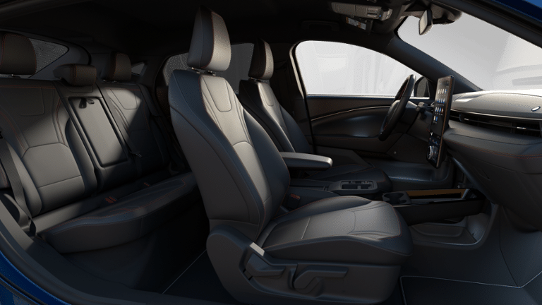 This 2025 Ford Mustang Mach-E comes equipped with, 10 Speakers, Apple CarPlay/Android Auto, Brake assist, Brembo Branded Front Brakes, Delay-off headlights, Equipment Group 300A Standard Package, Exterior Parking Camera Rear, Heated steering wheel, Heated/Ventilated Perforated ActiveX Bucket Seats, Mobile Power Cord (120V/240V), NACS Fast Charging Adapter, Navigation system: Connected Navigation, Power Liftgate, Radio: B&O Sound System by Bang & Olufsen, Red Painted Front & Rear Brake Calipers, SiriusXM w/360L, Sport Appearance Package, Sport Pedals, SYNC 4A w/Enhanced Voice Recognition, Unique Front Fascia, Wheels: 19 Monochromatic High Gloss Black-Painted, 4-Wheel Disc Brakes, ABS brakes, Air Conditioning, Alloy wheels, AM/FM radio: SiriusXM with 360L, Auto High-beam Headlights, Auto-dimming Rear-View mirror, Automatic temperature control, Bumpers: body-color, Compass, Driver door bin, Driver vanity mirror, Dual front impact airbags, Dual front side impact airbags, Electronic Stability Control, Emergency communication system: 911 Assist, Four wheel independent suspension, Front anti-roll bar, Front Bucket Seats, Front Center Armrest, Front dual zone A/C, Front reading lights, Fully automatic headlights, Garage door transmitter, Heated door mirrors, Heated front seats, Illuminated entry, Knee airbag, Low tire pressure warning, Memory seat, Occupant sensing airbag, Outside temperature display, Overhead airbag, Overhead console, Panic alarm, Passenger door bin, Passenger vanity mirror, Power door mirrors, Power driver seat, Power passenger seat, Power steering, Power windows, Radio data system, Rain sensing wipers, Rear anti-roll bar, Rear seat center armrest, Rear side impact airbag, Rear window defroster, Rear window wiper, Remote keyless entry, Security system, Speed control, Speed-sensing steering, Speed-Sensitive Wipers, Split folding rear seat, Spoiler, Steering wheel mounted audio controls, Telescoping steering wheel, Tilt steering wheel, Traction control, Trip computer, Turn signal indicator mirrors, Variably intermittent wipers, Ventilated front seats, Wheels: 19 Bright Machined-Face Aluminum, BLUECRUISE EQUIP:90 DAY TRIA, CONNECT PKG: 1 YEAR INC, 10 Speakers, Apple CarPlay/Android Auto, Brake assist, Brembo Branded Front Brakes, Delay-off headlights, Equipment Group 300A Standard Package, Exterior Parking Camera Rear, Heated steering wheel, Heated/Ventilated Perforated ActiveX Bucket Seats, Mobile Power Cord (120V/240V), NACS Fast Charging Adapter, Navigation system: Connected Navigation, Power Liftgate, Radio: B&O Sound System by Bang & Olufsen, Red Painted Front & Rear Brake Calipers, SiriusXM w/360L, Sport Appearance Package, Sport Pedals, SYNC 4A w/Enhanced Voice Recognition, Unique Front Fascia, Wheels: 19 Monochromatic High Gloss Black-Painted. Velocity Blue Metallic 2025 Ford Mustang Mach-E Premium AWD Single-Speed Automatic Dual Electric Motor