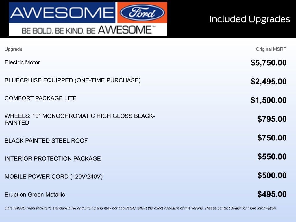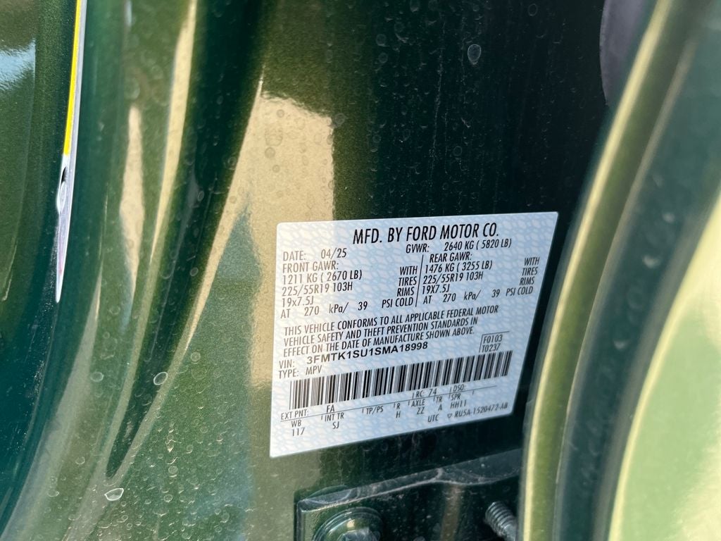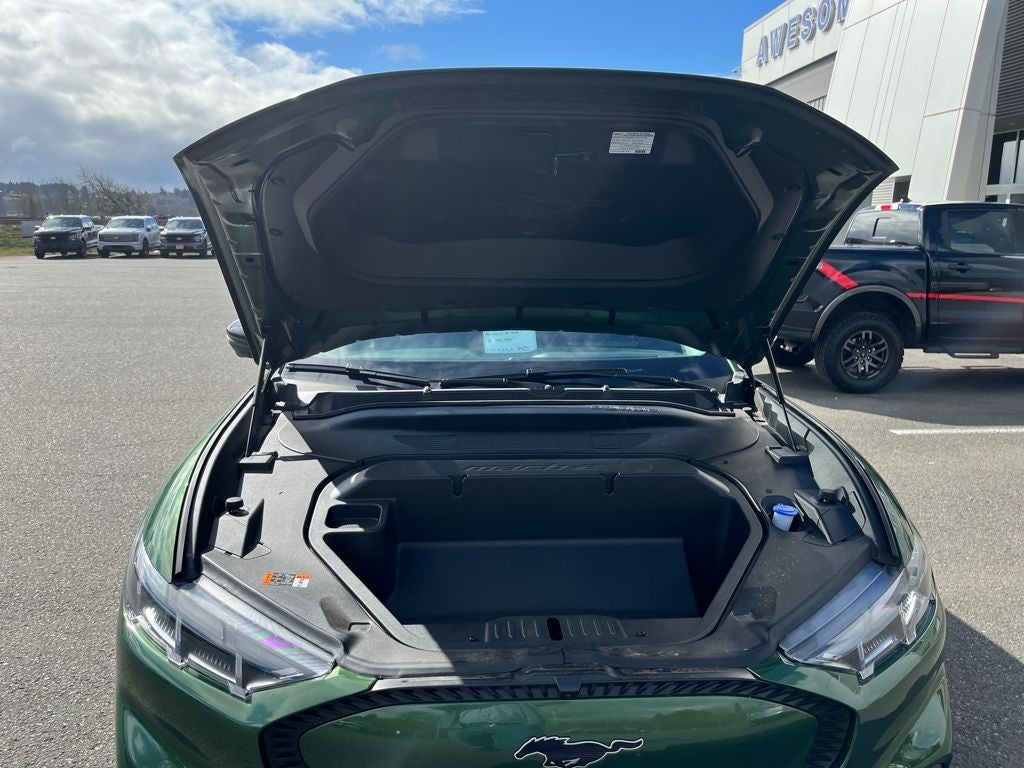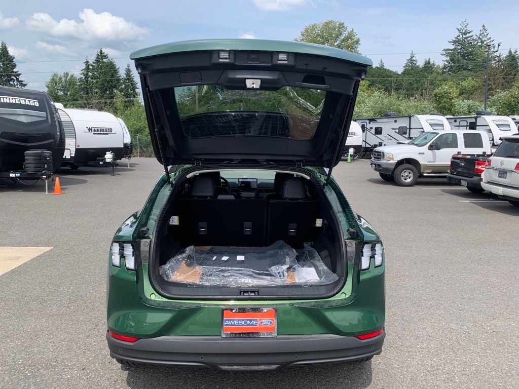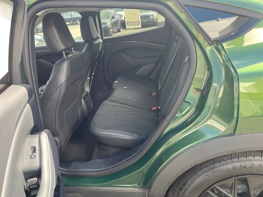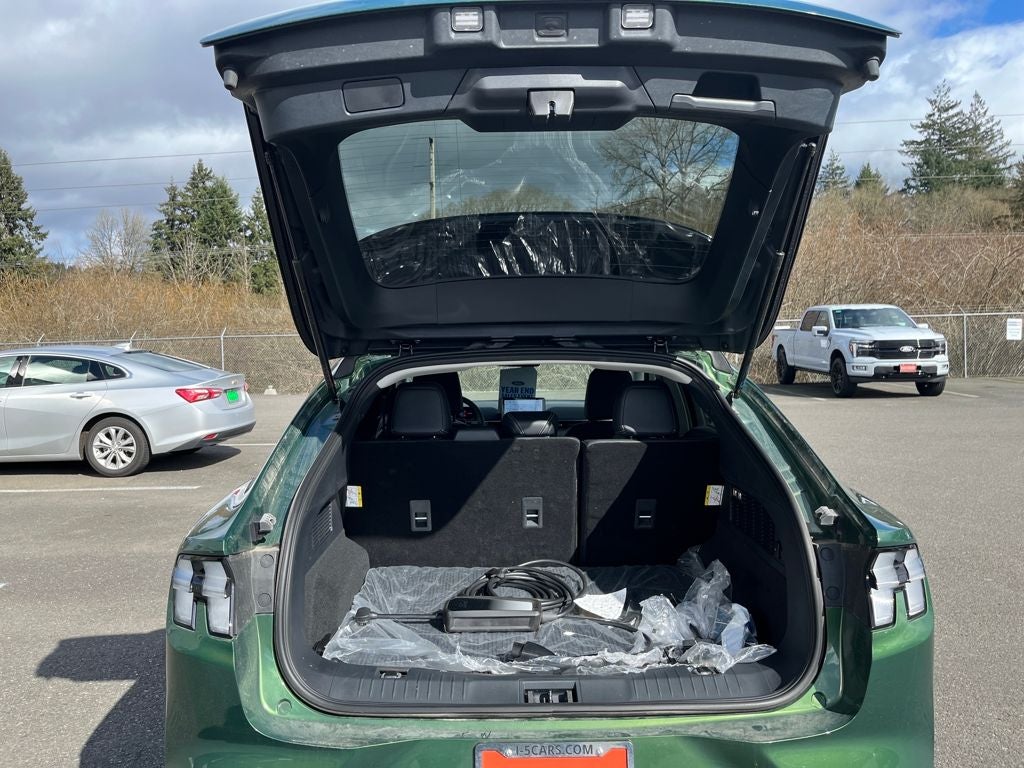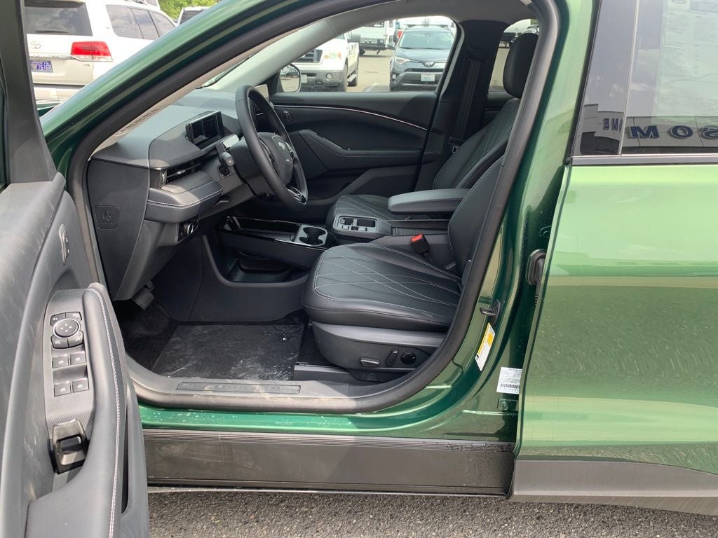 This 2025 Ford Mustang Mach-E comes equipped with, 1st & 2nd Row Floor Liners w/o Carpet Mats, BlueCruise Equipped (1-Year Plan), Cargo Area Cover, Cargo Floor Liner, Cellular Connectivity for Audio/Video Streaming, Equipment Group 100A Standard Package, Ford Connectivity Package (One-Time Purchase), Interior Protection Package, Mobile Power Cord (120V/240V), NACS Fast Charging Adapter, Wheels: 19 Monochromatic High Gloss Black-Painted, 4-Wheel Disc Brakes, 6 Speakers, ABS brakes, ActiveX Bucket Seats, Air Conditioning, AM/FM radio: SiriusXM with 360L, AM/FM Stereo, Apple CarPlay/Android Auto, Auto High-beam Headlights, Auto-dimming Rear-View mirror, Automatic temperature control, Brake assist, Bumpers: body-color, Compass, Delay-off headlights, Driver door bin, Driver vanity mirror, Dual front impact airbags, Dual front side impact airbags, Electronic Stability Control, Emergency communication system: 911 Assist, Exterior Parking Camera Rear, Four wheel independent suspension, Front anti-roll bar, Front Bucket Seats, Front Center Armrest, Front dual zone A/C, Front reading lights, Fully automatic headlights, Garage door transmitter, Heated door mirrors, Illuminated entry, Knee airbag, Low tire pressure warning, Navigation system: Connected Navigation, Occupant sensing airbag, Outside temperature display, Overhead airbag, Overhead console, Panic alarm, Passenger door bin, Passenger vanity mirror, Power door mirrors, Power driver seat, Power steering, Power windows, Radio data system, Rain sensing wipers, Rear anti-roll bar, Rear seat center armrest, Rear side impact airbag, Rear window defroster, Rear window wiper, Remote keyless entry, Security system, SiriusXM w/360L, Speed control, Speed-sensing steering, Speed-Sensitive Wipers, Split folding rear seat, Spoiler, Steering wheel mounted audio controls, SYNC 4A w/Enhanced Voice Recognition, Telescoping steering wheel, Tilt steering wheel, Traction control, Trip computer, Turn signal indicator mirrors, Variably intermittent wipers, 1st & 2nd Row Floor Liners w/o Carpet Mats, BlueCruise Equipped (1-Year Plan), Cargo Area Cover, Cargo Floor Liner, Cellular Connectivity for Audio/Video Streaming, Equipment Group 100A Standard Package, Ford Connectivity Package (One-Time Purchase), Interior Protection Package, Mobile Power Cord (120V/240V), NACS Fast Charging Adapter, Wheels: 19 Monochromatic High Gloss Black-Painted. Eruption Green Metallic 2025 Ford Mustang Mach-E Select AWD Single-Speed Automatic Dual Electric Motor