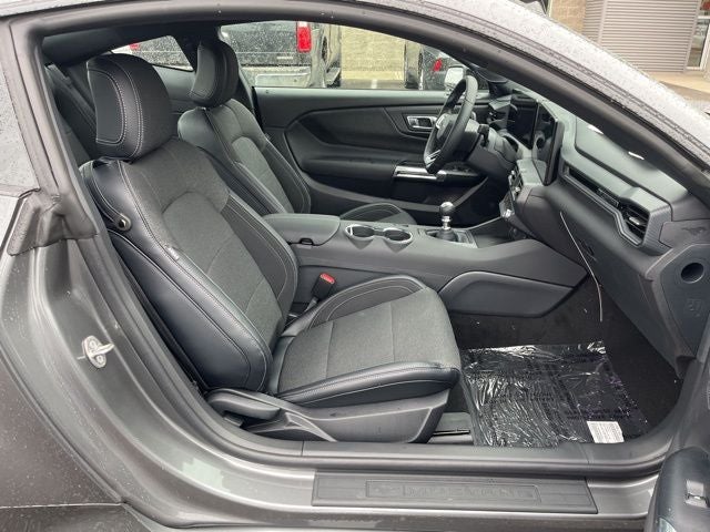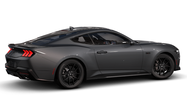 9-Speaker Stereo System, ABS brakes, Alloy wheels, Ambient Lighting w/MyColor, Black GT Pony Badges, Black Mirror Caps, Cloth/Vinyl Heated Bucket Seats, Compass, Electronic Stability Control, Equipment Group 301A High Package, Front dual zone A/C, Headlamps w/Black Bezels, Illuminated entry, Low tire pressure warning, Mustang Nite Pony Package, Painted Black Roof, Remote keyless entry, SiriusXM w/360L & HD Radio, Traction control. Carbonized Gray Metallic 2025 Ford Mustang GT RWD 6-Speed Manual 5.0L V8 Ti-VCT