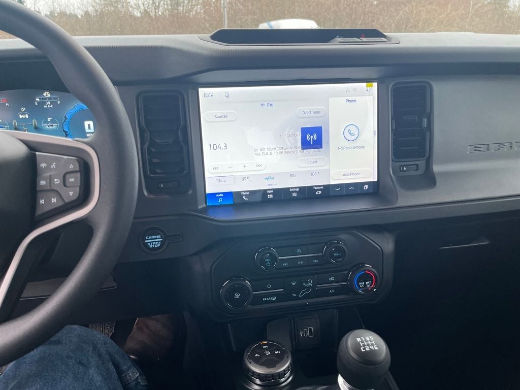 This 2026 Ford Bronco comes equipped with, 4.46 Axle Ratio, AM/FM Stereo, Auto High-beam Headlights, Cloth Bucket Seats, Convertible HardTop, Equipment Group 101A, Ford Connectivity Package (1-Year Included), Glass rear window, Illuminated entry, SiriusXM with 360L, SYNC 4, Trailer Tow Package, Wheels: 16 Bright Polished Silver-Painted Steel, 4-Wheel Disc Brakes, 7 Speakers, ABS brakes, Air Conditioning, AM/FM radio: SiriusXM with 360L, Brake assist, Compass, Convertible roof lining, Delay-off headlights, Driver door bin, Driver vanity mirror, Dual front impact airbags, Dual front side impact airbags, Electronic Stability Control, Emergency communication system: 911 Assist, Exterior Parking Camera Rear, Front anti-roll bar, Front Bucket Seats, Front Center Armrest, Front reading lights, Front wheel independent suspension, Fully automatic headlights, Heated door mirrors, Integrated roll-over protection, Low tire pressure warning, Occupant sensing airbag, Outside temperature display, Overhead airbag, Overhead console, Panic alarm, Passenger door bin, Passenger vanity mirror, Power door mirrors, Power steering, Power windows, Radio data system, Rear window defroster, Rear window wiper, Remote keyless entry, Security system, Speed control, Split folding rear seat, Steering wheel mounted audio controls, Tachometer, Telescoping steering wheel, Tilt steering wheel, Traction control, Trip computer, Variably intermittent wipers, 4.46 Axle Ratio, AM/FM Stereo, Auto High-beam Headlights, Cloth Bucket Seats, Convertible HardTop, Equipment Group 101A, Ford Connectivity Package (1-Year Included), Glass rear window, Illuminated entry, SiriusXM with 360L, SYNC 4, Trailer Tow Package, Wheels: 16 Bright Polished Silver-Painted Steel. Carbonized Gray Metallic 2026 Ford Bronco 4WD 7-Speed Manual 2.3L EcoBoost I-4