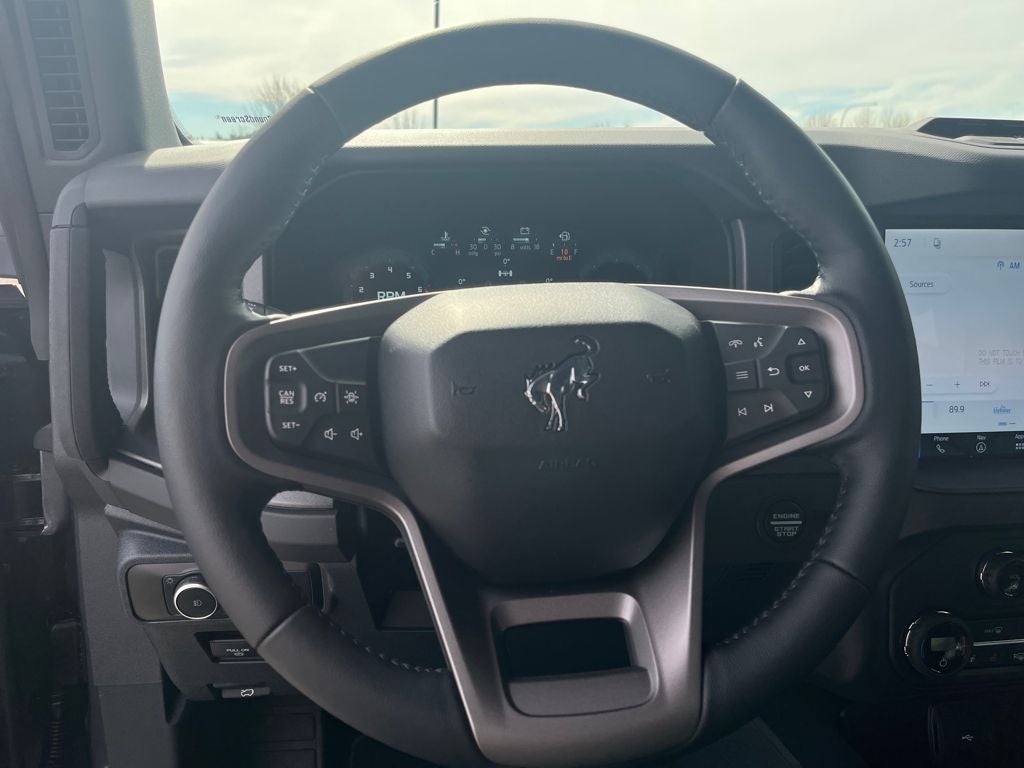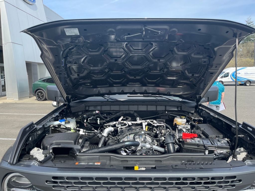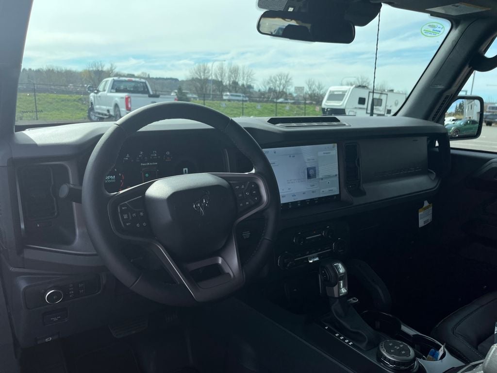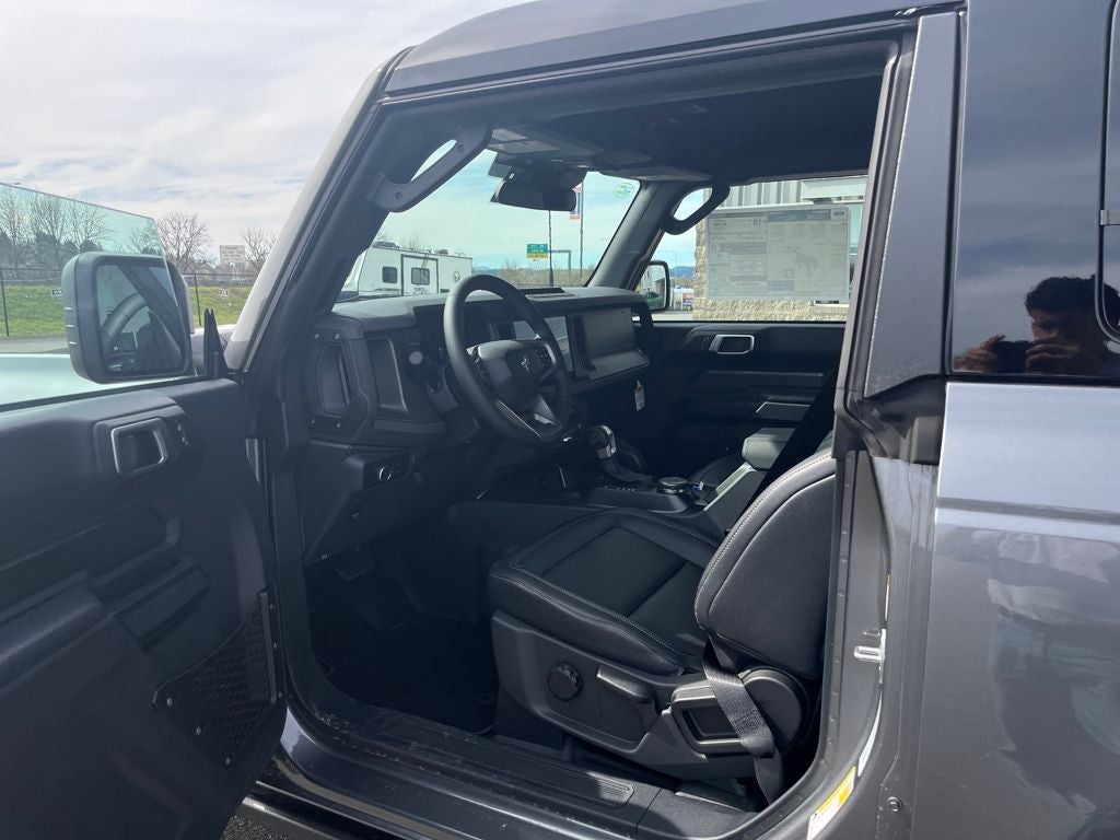 This 2026 Ford Bronco comes equipped with, 2-Door Intelligent Access with Lock/Unlock, 4.7 Final Drive Ratio, AM/FM Stereo, Ambient Footwell Lighting, Connected Navigation, Driver and Front Passenger Illuminated Sliding Visor Vanity Mirrors, Dual Smart Charging USB Ports, Dual-Zone Electronic Automatic Temperature Control, Equipment Group 332A Mid Package, Ford Connectivity Package (1-Year Included), Front Row Heated Seats, Front Stabilizer Disconnect, Hard Top Sound Deadening Headliner, Heated Steering Wheel, High Clearance Suspension, Marine Grade Vinyl Heated Bucket Seats, Painted Hard Top, Position-Sensitive Bilstein Shock Absorbers, Pro Power Onboard - 400W, Rear Parking Sensors, Rear-Window Defroster and Washer, Sasquatch Package, Shadow Black-Painted Hard Top, SiriusXM with 360L, SYNC 4, Wheels: 17 Carbonized Gray-Painted Aluminum, Wheels: 17 Matte Black Alloy, 4-Wheel Disc Brakes, 7 Speakers, ABS brakes, Air Conditioning, Alloy wheels, AM/FM radio: SiriusXM with 360L, Auto High-beam Headlights, Auto-dimming Rear-View mirror, Brake assist, Compass, Convertible HardTop, Convertible roof lining, Delay-off headlights, Driver door bin, Driver vanity mirror, Dual front impact airbags, Dual front side impact airbags, Electronic Stability Control, Emergency communication system: 911 Assist, Exterior Parking Camera Rear, Front anti-roll bar, Front Bucket Seats, Front Center Armrest, Front fog lights, Front reading lights, Front wheel independent suspension, Fully automatic headlights, Glass rear window, Heated door mirrors, Illuminated entry, Integrated roll-over protection, Leather Shift Knob, Low tire pressure warning, Occupant sensing airbag, Outside temperature display, Overhead airbag, Overhead console, Panic alarm, Passenger door bin, Passenger vanity mirror, Power door mirrors, Power steering, Power windows, Radio data system, Rear window defroster, Rear window wiper, Remote keyless entry, Security system, Speed control, Split folding rear seat, Steering wheel mounted audio controls, Tachometer, Telescoping steering wheel, Tilt steering wheel, Traction control, Trip computer, Variably intermittent wipers, Voltmeter, 2-Door Intelligent Access with Lock/Unlock, 4.7 Final Drive Ratio, AM/FM Stereo, Ambient Footwell Lighting, Connected Navigation, Driver and Front Passenger Illuminated Sliding Visor Vanity Mirrors, Dual Smart Charging USB Ports, Dual-Zone Electronic Automatic Temperature Control, Equipment Group 332A Mid Package, Ford Connectivity Package (1-Year Included), Front Row Heated Seats, Front Stabilizer Disconnect, Hard Top Sound Deadening Headliner, Heated Steering Wheel, High Clearance Suspension, Marine Grade Vinyl Heated Bucket Seats, Painted Hard Top, Position-Sensitive Bilstein Shock Absorbers, Pro Power Onboard - 400W, Rear Parking Sensors, Rear-Window Defroster and Washer, Sasquatch Package, Shadow Black-Painted Hard Top, SiriusXM with 360L, SYNC 4, Wheels: 17 Carbonized Gray-Painted Aluminum, Wheels: 17 Matte Black Alloy. Carbonized Gray Metallic 2026 Ford Bronco Badlands 4WD 10-Speed Automatic 2.3L EcoBoost I-4