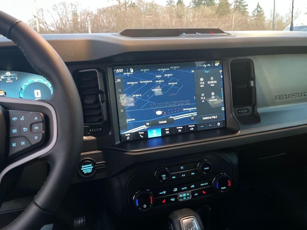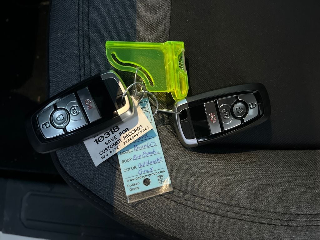 This 2026 Ford Bronco comes equipped with, 4-Wheel Disc Brakes, 4.46 Axle Ratio, 7 Speakers, ABS brakes, Air Conditioning, Alloy wheels, AM/FM radio: SiriusXM with 360L, AM/FM Stereo, Auto High-beam Headlights, Brake assist, Cloth Bucket Seats, Compass, Delay-off headlights, Driver door bin, Driver vanity mirror, Dual front impact airbags, Dual front side impact airbags, Electronic Stability Control, Emergency communication system: 911 Assist, Exterior Parking Camera Rear, Ford Connectivity Package (1-Year Included), Front anti-roll bar, Front Bucket Seats, Front Center Armrest, Front reading lights, Front wheel independent suspension, Fully automatic headlights, Heated door mirrors, Illuminated entry, Integrated roll-over protection, Low tire pressure warning, Occupant sensing airbag, Outside temperature display, Overhead airbag, Overhead console, Panic alarm, Passenger door bin, Passenger vanity mirror, Power door mirrors, Power steering, Power windows, Radio data system, Remote keyless entry, Security system, SiriusXM with 360L, Speed control, Split folding rear seat, Steering wheel mounted audio controls, SYNC 4, Tachometer, Telescoping steering wheel, Tilt steering wheel, Traction control, Trip computer, Variably intermittent wipers, Wheels: 17 Carbonized Gray-Painted Aluminum. Avalanche Gray 2026 Ford Bronco Big Bend 4WD 10-Speed Automatic 2.3L EcoBoost I-4