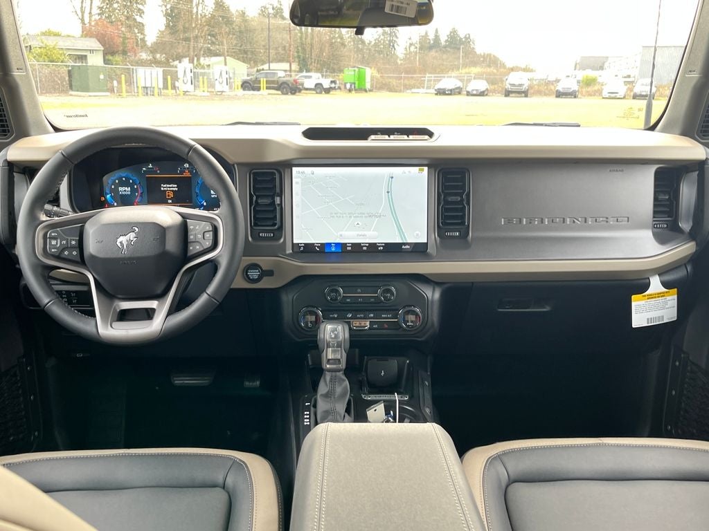 This 2026 Ford Bronco comes equipped with, 2-Door Intelligent Access with Lock/Unlock, AM/FM Stereo, Ambient Footwell Lighting, Cloth Bucket Seats, Connected Navigation, Driver and Front Passenger Illuminated Sliding Visor Vanity Mirrors, Dual Smart Charging USB Ports, Dual-Zone Electronic Automatic Temperature Control, Equipment Group 222A Mid Package, First Aid Kit, Ford Connectivity Package (1-Year Included), Front Row Heated Seats, Hard Top Sound Deadening Headliner, Illuminated entry, Pro Power Onboard - 400W, Rear Parking Sensors, SiriusXM with 360L, SYNC 4, Wheels: 17 Carbonized Gray-Painted Aluminum, 4-Wheel Disc Brakes, 4.46 Axle Ratio, 7 Speakers, ABS brakes, Air Conditioning, Alloy wheels, AM/FM radio: SiriusXM with 360L, Auto High-beam Headlights, Brake assist, Compass, Delay-off headlights, Driver door bin, Driver vanity mirror, Dual front impact airbags, Dual front side impact airbags, Electronic Stability Control, Emergency communication system: 911 Assist, Exterior Parking Camera Rear, Front anti-roll bar, Front Bucket Seats, Front Center Armrest, Front reading lights, Front wheel independent suspension, Fully automatic headlights, Heated door mirrors, Integrated roll-over protection, Low tire pressure warning, Occupant sensing airbag, Outside temperature display, Overhead airbag, Overhead console, Panic alarm, Passenger door bin, Passenger vanity mirror, Power door mirrors, Power steering, Power windows, Radio data system, Remote keyless entry, Security system, Speed control, Split folding rear seat, Steering wheel mounted audio controls, Tachometer, Telescoping steering wheel, Tilt steering wheel, Traction control, Trip computer, Variably intermittent wipers, FORD CO-PILOT360, PRO POWER ONBOARD - 400W, 2-Door Intelligent Access with Lock/Unlock, AM/FM Stereo, Ambient Footwell Lighting, Cloth Bucket Seats, Connected Navigation, Driver and Front Passenger Illuminated Sliding Visor Vanity Mirrors, Dual Smart Charging USB Ports, Dual-Zone Electronic Automatic Temperature Control, Equipment Group 222A Mid Package, First Aid Kit, Ford Connectivity Package (1-Year Included), Front Row Heated Seats, Hard Top Sound Deadening Headliner, Illuminated entry, Pro Power Onboard - 400W, Rear Parking Sensors, SiriusXM with 360L, SYNC 4, Wheels: 17 Carbonized Gray-Painted Aluminum. Avalanche Gray 2026 Ford Bronco Big Bend 4WD 10-Speed Automatic 2.3L EcoBoost I-4