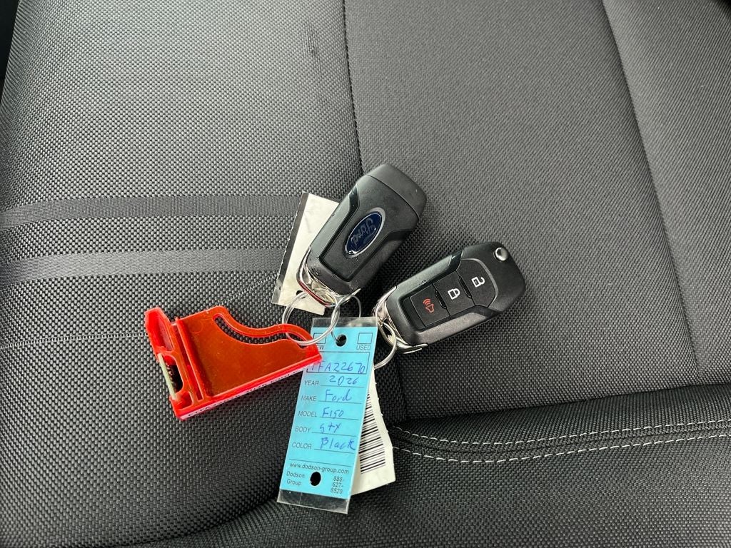 This 2026 Ford F-150 comes equipped with, 3.5L PowerBoost Full-Hybrid V6, 4WD, 3.55 Axle Ratio, 4-Wheel Disc Brakes, 6 Speakers, ABS brakes, Air Conditioning, Alloy wheels, AM/FM radio: SiriusXM with 360L, Auto High-beam Headlights, Brake assist, Bumpers: body-color, Compass, Delay-off headlights, Driver door bin, Dual front impact airbags, Dual front side impact airbags, Electronic Stability Control, Emergency communication system: SYNC 4 911 Assist, Ford Connectivity Package (1-Year Included), Front anti-roll bar, Front Bucket Seats, Front Center Armrest, Front reading lights, Front wheel independent suspension, Fully automatic headlights, GVWR: 6,650 lbs Payload Package, Heated door mirrors, Illuminated entry, Internet access capable: 5G Modem - Ford Connectivity Package, Low tire pressure warning, Occupant sensing airbag, Outside temperature display, Overhead airbag, Overhead console, Panic alarm, Passenger door bin, Passenger vanity mirror, Power door mirrors, Power steering, Power windows, Radio data system, Radio: AM/FM Stereo with SiriusXM 360L, Rear Parking Sensors, Rear step bumper, Rear window defroster, Remote keyless entry, Security system, Speed control, Split folding rear seat, Steering wheel mounted audio controls, SYNC 4 with Enhanced Voice Recognition, Tachometer, Telescoping steering wheel, Tilt steering wheel, Traction control, Trip computer, Unique Sport Cloth 40/Console/40 Front-Seats, Variably intermittent wipers, Wheels: 18 Gloss Black, 3.5L PowerBoost Full-Hybrid V6, 4WD. 2026 Ford F-150 STX 4WD 10-Speed Automatic 3.5L PowerBoost Full-Hybrid V6