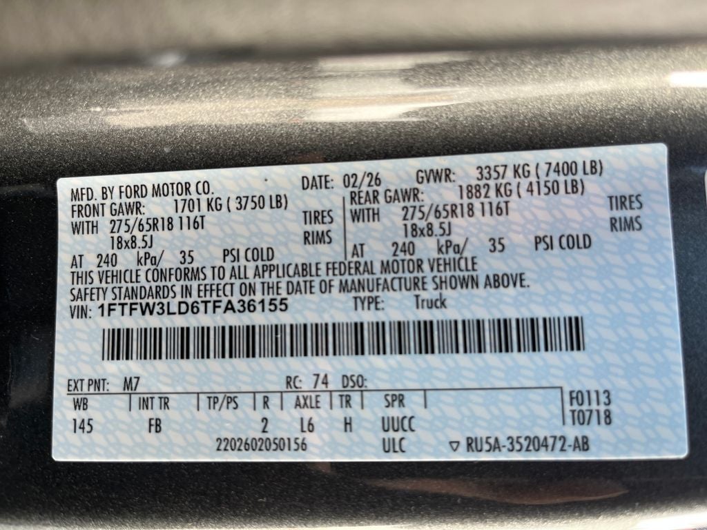 This 2026 Ford F-150 comes equipped with, 3.5L PowerBoost Full-Hybrid V6, 4WD, 6 Black Running Boards, Black Exterior Badging, Black Grille, Black Retractable Bed Hooks by Bull Accessories, Body-Color Door Handles, Body-Color Front and Rear Bumpers, Console Worksurface, Dark Interior Appliques, First Aid Kit with Ford Logo, Ford Connectivity Package (1-Year Included), Gray Box Side Decal, Mobile Office Package, Partitioned Lockable Rear Storage, Tough Bed Spray-in Bedliner, Unique Sport Cloth 40/Console/40 Front-Seats, Wheels: 18 Gloss Black, XLT Black Appearance Package, 18 Painted Aluminum Wheels, 3.31 Axle Ratio, 4-Wheel Disc Brakes, 6 Speakers, ABS brakes, Air Conditioning, Alloy wheels, AM/FM radio: SiriusXM with 360L, Auto High-beam Headlights, Brake assist, Bumpers: body-color, Compass, Delay-off headlights, Driver door bin, Driver vanity mirror, Dual front impact airbags, Dual front side impact airbags, Electronic Stability Control, Emergency communication system: SYNC 4 911 Assist, Front anti-roll bar, Front Center Armrest, Front fog lights, Front reading lights, Front wheel independent suspension, Fully automatic headlights, Heated door mirrors, Illuminated entry, Internet access capable: 5G Modem - Ford Connectivity Package, Low tire pressure warning, Occupant sensing airbag, Outside temperature display, Overhead airbag, Overhead console, Panic alarm, Passenger door bin, Passenger vanity mirror, Power door mirrors, Power steering, Power windows, Radio data system, Radio: AM/FM Stereo with SiriusXM 360L, Rear reading lights, Rear step bumper, Rear window defroster, Remote keyless entry, Security system, Speed control, Split folding rear seat, Steering wheel mounted audio controls, SYNC 4 with Enhanced Voice Recognition, Tachometer, Telescoping steering wheel, Tilt steering wheel, Traction control, Trip computer, Variably intermittent wipers, 3.5L PowerBoost Full-Hybrid V6, 4WD, 6 Black Running Boards, Black Exterior Badging, Black Grille, Black Retractable Bed Hooks by Bull Accessories, Body-Color Door Handles, Body-Color Front and Rear Bumpers, Console Worksurface, Dark Interior Appliques, First Aid Kit with Ford Logo, Ford Connectivity Package (1-Year Included), Gray Box Side Decal, Mobile Office Package, Partitioned Lockable Rear Storage, Tough Bed Spray-in Bedliner, Unique Sport Cloth 40/Console/40 Front-Seats, Wheels: 18 Gloss Black, XLT Black Appearance Package. 2026 Ford F-150 XLT 4WD 10-Speed Automatic 3.5L PowerBoost Full-Hybrid V6