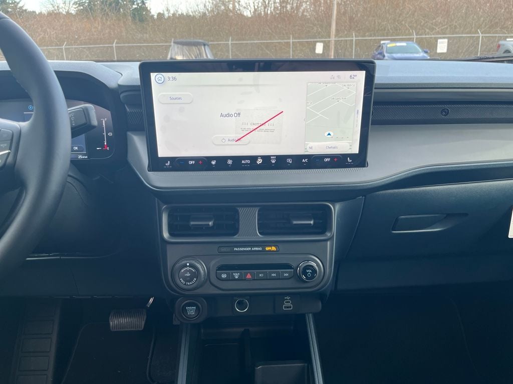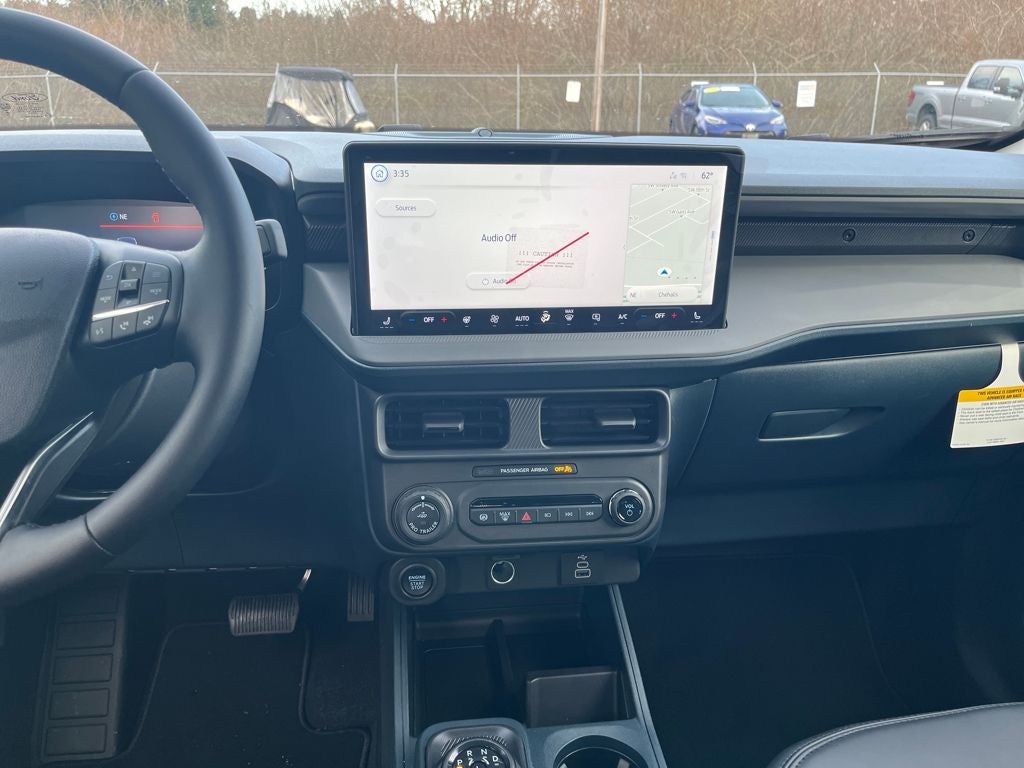 This 2026 Ford Maverick comes equipped with, 2.5L I-4 Hybrid, 2.91 Axle Ratio, 4-Wheel Disc Brakes, 8 Speakers, ABS brakes, ActiveX Trimmed Heated Front Bucket Seats, Air Conditioning, Alloy wheels, AM/FM radio: SiriusXM with 360L, Apple CarPlay/Android Auto, Auto High-beam Headlights, Automatic temperature control, Brake assist, Bumpers: body-color, Compass, Delay-off headlights, Driver door bin, Driver vanity mirror, Dual front impact airbags, Dual front side impact airbags, Electronic Stability Control, Emergency communication system: SYNC 4 911 Assist, Exterior Parking Camera Rear, Ford Connectivity Package (1-Year Included), Four wheel independent suspension, Front anti-roll bar, Front Bucket Seats, Front Center Armrest, Front dual zone A/C, Front reading lights, Fully automatic headlights, Heated door mirrors, Heated front seats, Heated steering wheel, Illuminated entry, Internet access capable: 5G Modem - Ford Connectivity Package, Knee airbag, Low tire pressure warning, Navigation system: Connected Navigation, Occupant sensing airbag, Outside temperature display, Overhead airbag, Overhead console, Panic alarm, Passenger door bin, Passenger vanity mirror, Power door mirrors, Power driver seat, Power steering, Power windows, Radio data system, Radio: B&O Sound System by Bang and Olufsen, Rear anti-roll bar, Rear seat center armrest, Rear step bumper, Remote keyless entry, Security system, SiriusXM with 360L, Speed control, Speed-sensing steering, Steering wheel mounted audio controls, SYNC 4 with Enhanced Voice Recognition, Telescoping steering wheel, Tilt steering wheel, Traction control, Trip computer, Wheels: 19 Machined Aluminum Painted, 2.5L I-4 Hybrid. 2026 Ford Maverick Lariat AWD CVT 2.5L I-4 Hybrid