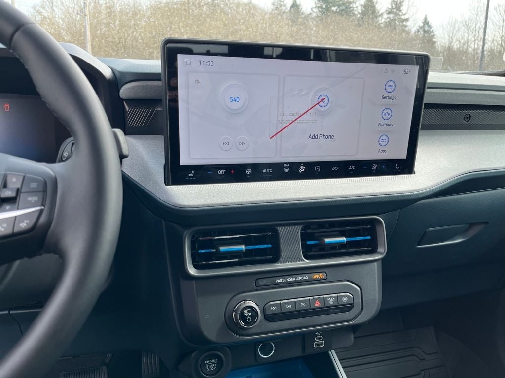 This 2026 Ford Maverick comes equipped with, 2.5L I-4 Hybrid, 2.91 Axle Ratio, 4K Tow Package, Auto High Beams, BLIS with Cross-Traffic Alert and Trailer Coverage, Equipment Group 301A, Exit Warning, Ford Co-Pilot360, Ford Connectivity Package (1-Year Included), Heated Mirror with Painted Black Skull Caps, Heated Seats, Intersection Assist, Lane-Keeping System, LED Box Lighting, Power Glass Manual-Folding Mirrors, Pre-Collision Assist with Automatic Emergency Braking, Pro Power Onboard - 400W, Radio: AM/FM Stereo with 6 Speakers, Rear Cross Traffic Braking, Rear Parking Sensors, Rear-View Camera, Remote Start System, SiriusXM with 360L, Soft Vinyl Wrapped Heated Steering Wheel, SYNC 4 with Enhanced Voice Recognition, Trailer Brake Controller, Trailer Hitch (class III) 2 Receiver, Unique Cloth Front Bucket Seats, Upgraded Cooling Fan, Wheels: 17 Carbonized Gray Painted Aluminum, XLT Luxury Package, 4-Wheel Disc Brakes, 6 Speakers, ABS brakes, Air Conditioning, Alloy wheels, AM/FM radio: SiriusXM with 360L, Apple CarPlay/Android Auto, Auto High-beam Headlights, Automatic temperature control, Brake assist, Bumpers: body-color, Compass, Delay-off headlights, Driver door bin, Driver vanity mirror, Dual front impact airbags, Dual front side impact airbags, Electronic Stability Control, Emergency communication system: SYNC 4 911 Assist, Exterior Parking Camera Rear, Four wheel independent suspension, Front anti-roll bar, Front Bucket Seats, Front Center Armrest, Front reading lights, Fully automatic headlights, Illuminated entry, Internet access capable: 5G Modem - Ford Connectivity Package, Knee airbag, Low tire pressure warning, Occupant sensing airbag, Outside temperature display, Overhead airbag, Overhead console, Panic alarm, Passenger door bin, Passenger vanity mirror, Power door mirrors, Power steering, Power windows, Radio data system, Rear anti-roll bar, Rear seat center armrest, Rear step bumper, Remote keyless entry, Security system, Speed control, Speed-sensing steering, Steering wheel mounted audio controls, Telescoping steering wheel, Tilt steering wheel, Traction control, Trip computer, 2.5L I-4 Hybrid, 2.91 Axle Ratio, 4K Tow Package, Auto High Beams, BLIS with Cross-Traffic Alert and Trailer Coverage, Equipment Group 301A, Exit Warning, Ford Co-Pilot360, Ford Connectivity Package (1-Year Included), Heated Mirror with Painted Black Skull Caps, Heated Seats, Intersection Assist, Lane-Keeping System, LED Box Lighting, Power Glass Manual-Folding Mirrors, Pre-Collision Assist with Automatic Emergency Braking, Pro Power Onboard - 400W, Radio: AM/FM Stereo with 6 Speakers, Rear Cross Traffic Braking, Rear Parking Sensors, Rear-View Camera, Remote Start System, SiriusXM with 360L, Soft Vinyl Wrapped Heated Steering Wheel, SYNC 4 with Enhanced Voice Recognition, Trailer Brake Controller, Trailer Hitch (class III) 2 Receiver, Unique Cloth Front Bucket Seats, Upgraded Cooling Fan, Wheels: 17 Carbonized Gray Painted Aluminum, XLT Luxury Package. Carbonized Gray Metallic 2026 Ford Maverick XLT AWD CVT 2.5L I-4 Hybrid