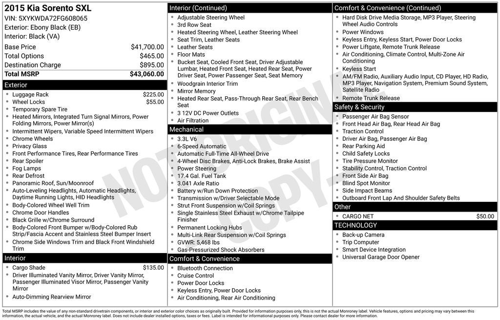 2015 Kia Sorento Limited V6 Ebony Black AWD 3.3L V6 DGI Dual CVVT 6-Speed Automatic with Sportmatic