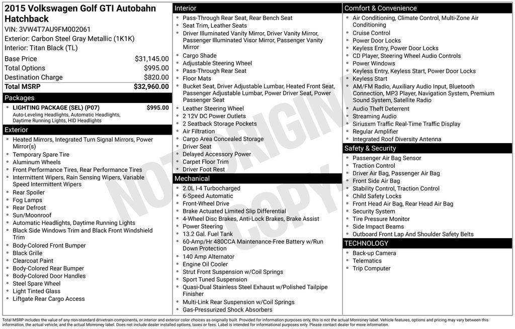 This 2015 Volkswagen Golf GTI Autobahn is a true gem, blending exceptional performance, premium amenities, and uncompromising style. We invite you to experience the thrill of ownership by scheduling a test drive at our showroom. Let us demonstrate how this Golf GTI can elevate your driving experience to new heights.
