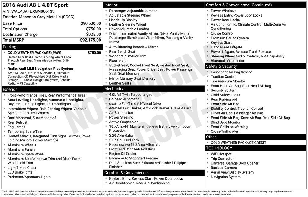 - Vehicle Name: Audi A8 L