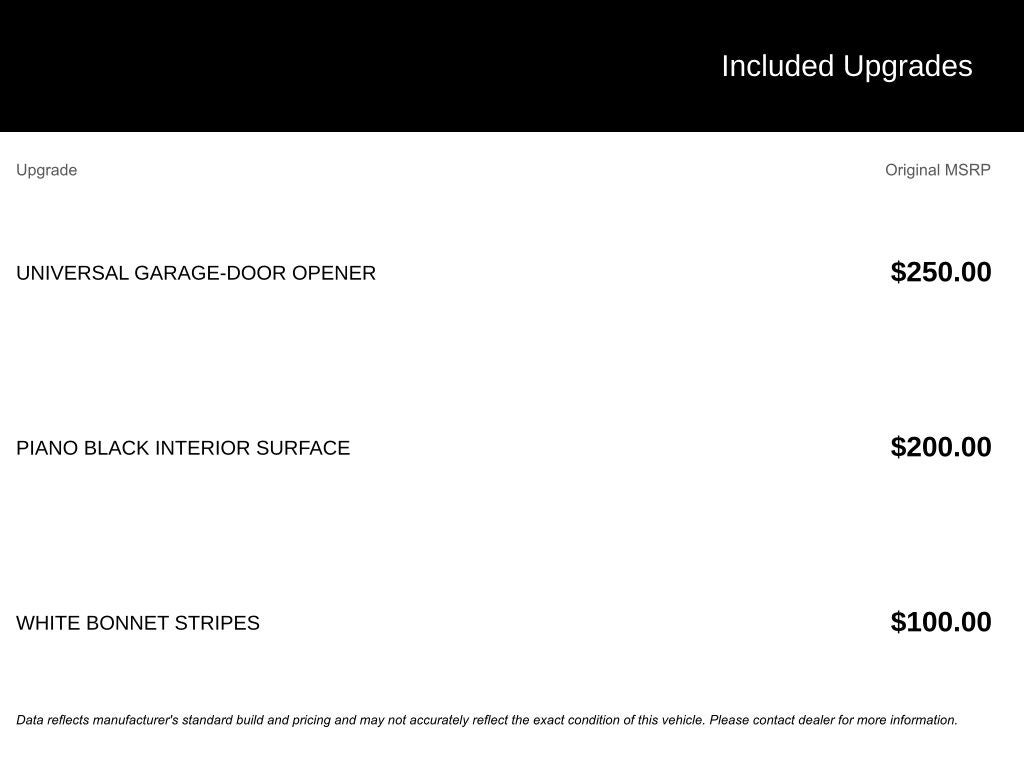 - Premium Package (Comfort Access Keyless Entry, harman/kardon Premium Sound System, Panoramic Moonroof)