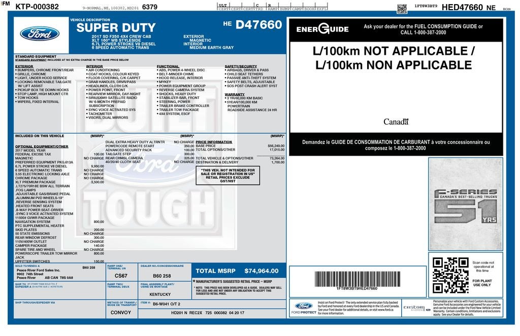 Whether you're tackling tough jobs or embarking on grand adventures, this 2017 Ford F-350SD XLT is the ultimate companion. With its impressive towing capacity, powerful engine, and comprehensive suite of features, this truck is ready to conquer any challenge you may face. Experience the difference for yourself and schedule a test drive today. We're confident you'll be impressed by the exceptional capabilities and refined sophistication of this exceptional F-350SD.