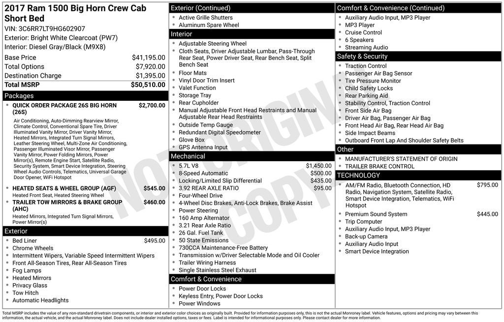 - Wheels: 20" x 8" Aluminum Chrome Clad