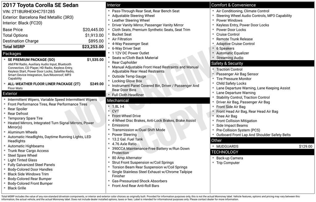 This 2017 Toyota Corolla SE is the perfect blend of style, performance, and technology. With its impressive fuel efficiency, comprehensive suite of features, and exceptional safety ratings, it's the ideal choice for the discerning driver. We invite you to experience the Corolla SE for yourself and schedule a test drive at our dealership. Let us show you why this vehicle is the perfect fit for your lifestyle.