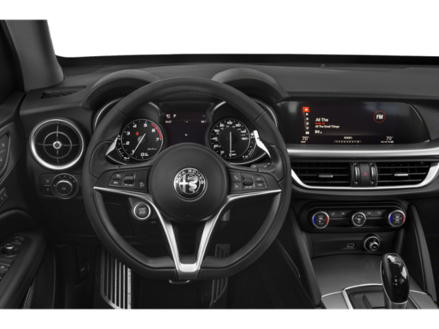 Inside, the Stelvio's premium cabin is appointed with luxurious features, including heated front seats, a heated steering wheel, and a dual-pane sunroof that floods the interior with natural light. The 8.8-inch widescreen display provides intuitive control over the advanced infotainment system, which includes navigation, Bluetooth® connectivity, and a premium audio setup.
