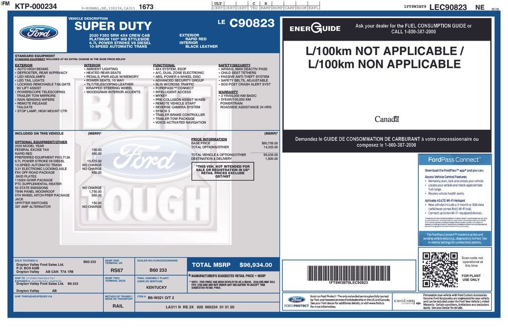 The powerful 6.7L Power Stroke V8 Turbodiesel engine, paired with a 10-speed automatic transmission, delivers exceptional performance and fuel efficiency, allowing you to tackle any job with ease. The 4-wheel drive system provides unparalleled traction and control, ensuring you can navigate through any conditions with confidence.