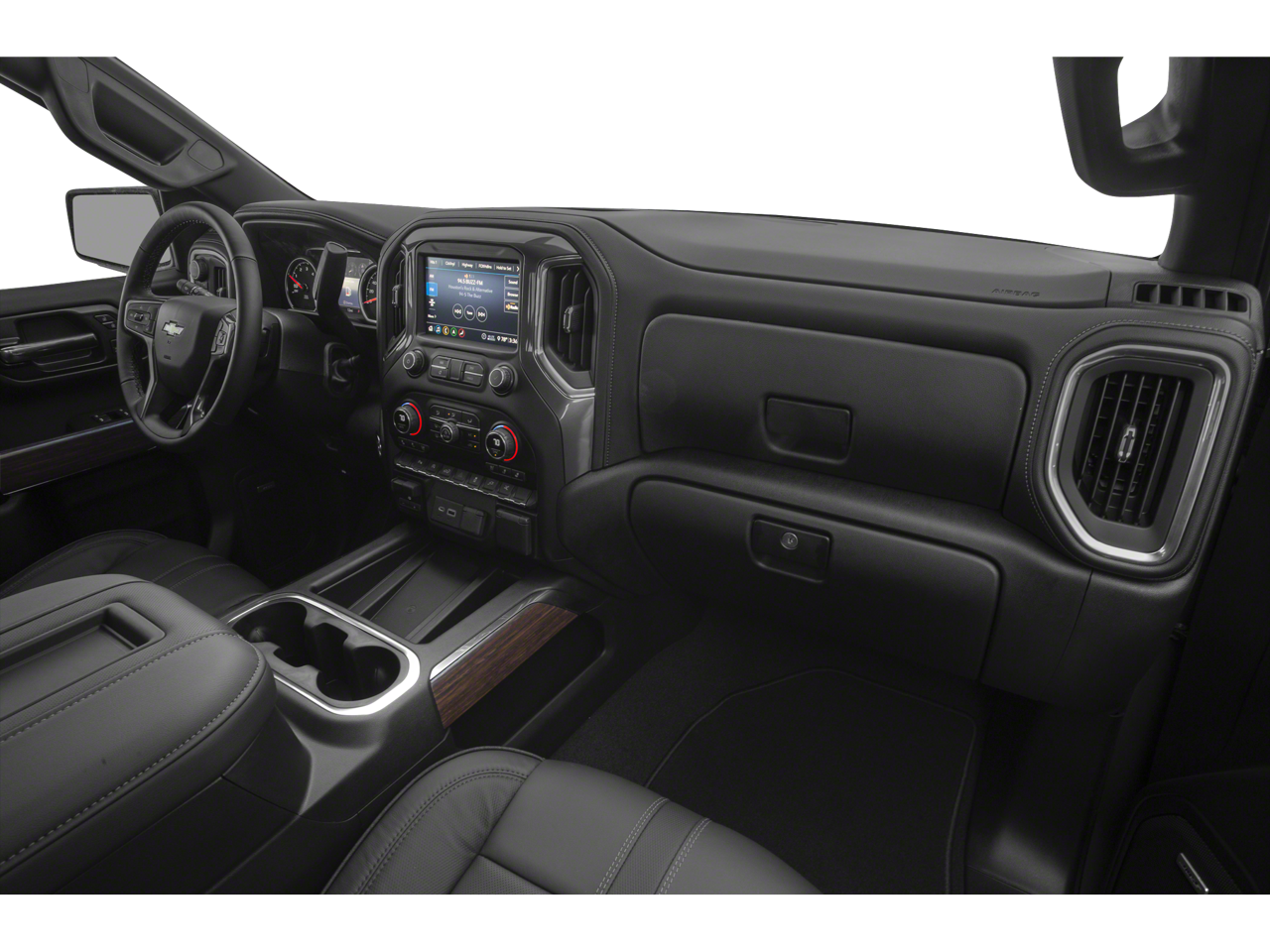 This 2021 Chevrolet Silverado 1500 comes equipped with, 10-Speed Automatic, 4WD, Jet Black Leather, 10-Way Power Driver Seat w/Lumbar, 10-Way Power Passenger Seat Adjuster w/Lumbar, 12-Volt Rear Auxiliary Power Outlet, 120-Volt Bed Mounted Power Outlet, 120-Volt Instrument Panel Power Outlet, 15 Diagonal Multicolor Head-Up Display, 170 Amp Alternator, 2nd Row Heated Outboard Seats, 3.23 Rear Axle Ratio, 4-Wheel Disc Brakes, 4G LTE Wi-Fi Hot Spot Capable, 7 Speakers, 8 Driver Information Center, ABS brakes, Adaptive Cruise Control, Advanced Trailering System, Air Conditioning, Alloy wheels, AM/FM radio: SiriusXM with 360L, Apple CarPlay/Android Auto, Auto-dimming door mirrors, Auto-Dimming Inside Rear-View Mirror, Auto-dimming Rear-View mirror, Auto-Locking Rear Differential, Automatic Emergency Braking, Automatic temperature control, Auxiliary External Transmission Oil Cooler, Bed View Camera, Bluetooth® For Phone, Brake assist, Bumpers: body-color, Chevrolet Connected Access Capable, Chevytec Spray-On Black Bedliner, Chrome Assist Steps, Chrome Grille, Chrome Recovery Hooks, Color-Keyed Carpeting Floor Covering, Compass, Deep-Tinted Glass, Delay-off headlights, Driver door bin, Driver Memory, Driver vanity mirror, Dual Exhaust w/Polished Outlets, Dual front impact airbags, Dual front side impact airbags, Electric Rear-Window Defogger, Electrical Lock Control Steering Column, Electronic Cruise Control, Electronic Stability Control, EZ Lift Power Lock & Release Tailgate, Floor Mounted Center Console, Following Distance Indicator, Forward Collision Alert, Front anti-roll bar, Front Bucket Seats, Front Carpeted Floor Mats, Front Center Armrest, Front dual zone A/C, Front fog lights, Front LED Fog Lamps, Front License Plate Kit, Front Pedestrian Braking, Front reading lights, Front wheel independent suspension, Fully automatic headlights, Garage door transmitter, HD Rear Vision Camera, HD Surround Vision w/2 Trailer View Camera Provisions, Heated door mirrors, Heated Driver & Front Outboard Passenger Seats, Heated front seats, Heated Steering Wheel, Heated steering wheel, Heavy Duty Suspension, Heavy-Duty Air Filter, Hill Descent Control, Hitch Guidance, Hitch Guidance w/Hitch View, Illuminated entry, Integrated Trailer Brake Controller, IntelliBeam Automatic High Beam On/Off, Keyless Open & Start, Lane Change Alert w/Side Blind Zone Alert, Lane Keep Assist w/Lane Departure Warning, Leather Wrapped Steering Wheel, LED Cargo Area Lighting, Low tire pressure warning, Manual Tilt/Telescoping Steering Column, Memory seat, Molded Black Splash Guards (LPO), Multi-Flex Tailgate, Navigation System, Occupant sensing airbag, Off-Road Suspension, OnStar & Chevrolet Connected Services Capable, Outside Heated Power-Adjustable Mirrors, Outside temperature display, Overhead airbag, Overhead console, Painted Mirror Caps, Panic alarm, Passenger door bin, Passenger vanity mirror, Perforated Leather Seat Trim, Power Door Locks, Power door mirrors, Power driver seat, Power Front Passenger Windows w/Express Up/Down, Power Front Windows w/Driver Express Up/Down, Power passenger seat, Power Rear Windows w/Express Down, Power Sliding Rear Window w/Rear Defogger, Power steering, Power Sunroof, Power Tailgate, Power windows, Preferred Equipment Group 3LZ, Premium audio system: Chevrolet Infotainment 3 Premium, Radio data system, Radio: Chevrolet Infotainment 3 Premium System, Rear Camera Mirror, Rear Carpeted Floor Mats, Rear Cross Traffic Alert, Rear Dual USB Charging-Only Ports, Rear reading lights, Rear seat center armrest, Rear step bumper, Rear Wheelhouse Liners, Rear window defroster, Remote keyless entry, Remote Vehicle Starter System, Safety Alert Seat, Safety Package II, Security system, SiriusXM w/360L, Speed control, Speed-sensing steering, Split folding rear seat, Standard Tailgate, Steering Wheel Audio Controls, Steering wheel mounted audio controls, Tachometer, Technology Package, Telescoping steering wheel, Theft De