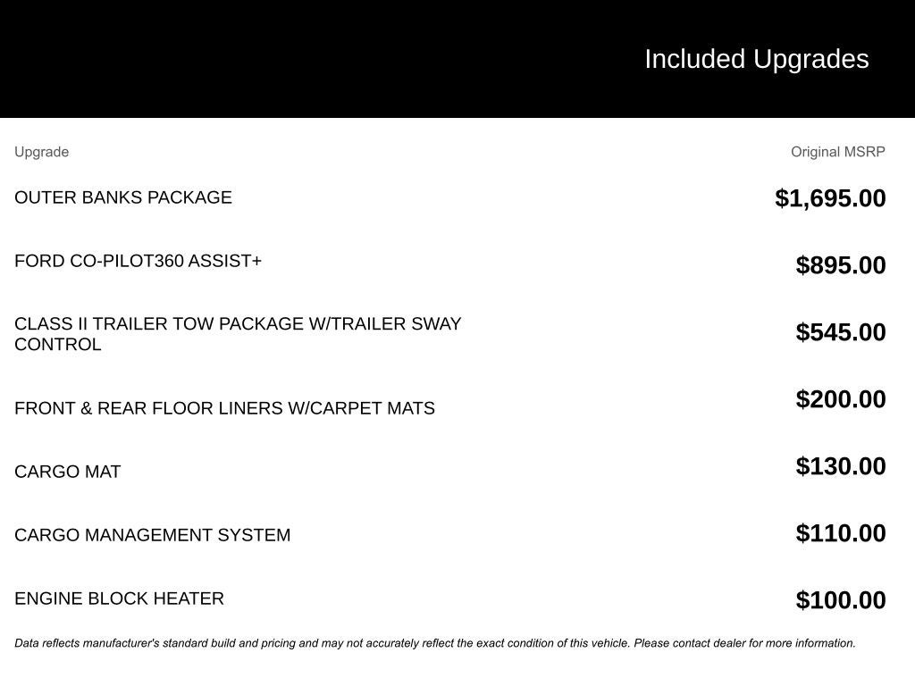 • Outer Banks Package (includes Bang & Olufsen Sound System, Power Moonroof, Wireless Charging Pad, and more)