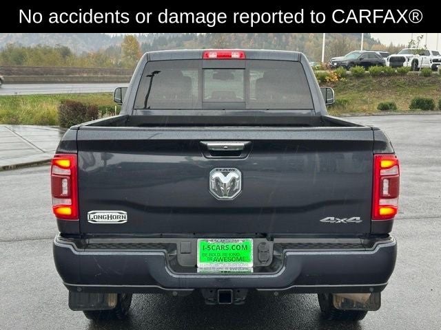 Boasting a commanding presence with its bold Gray exterior, this Ram 3500 Laramie Longhorn is powered by a 6.7L 6-Cylinder Diesel Turbocharged OHV engine, delivering exceptional towing and hauling capabilities. The 6-Speed Automatic transmission and 4WD system ensure seamless power delivery and confident handling, no matter the terrain.