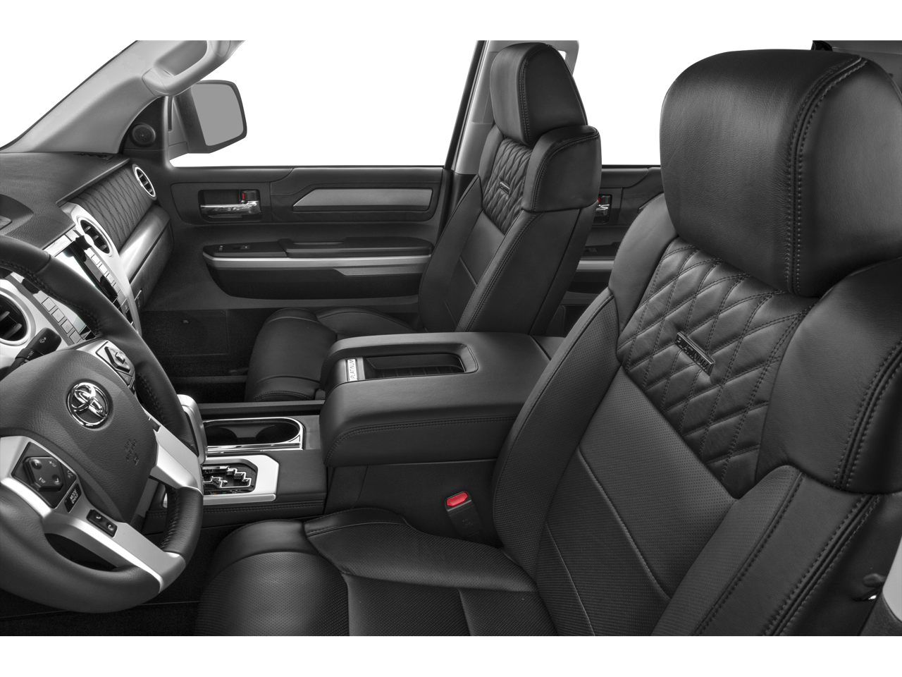 The Tundra Platinum's interior is equally impressive, with premium leather seating, dual-zone automatic climate control, and a state-of-the-art infotainment system with dynamic navigation, JBL audio, and seamless smartphone integration. Whether you're hauling a heavy load or embarking on a family adventure, this Tundra is up for the task.