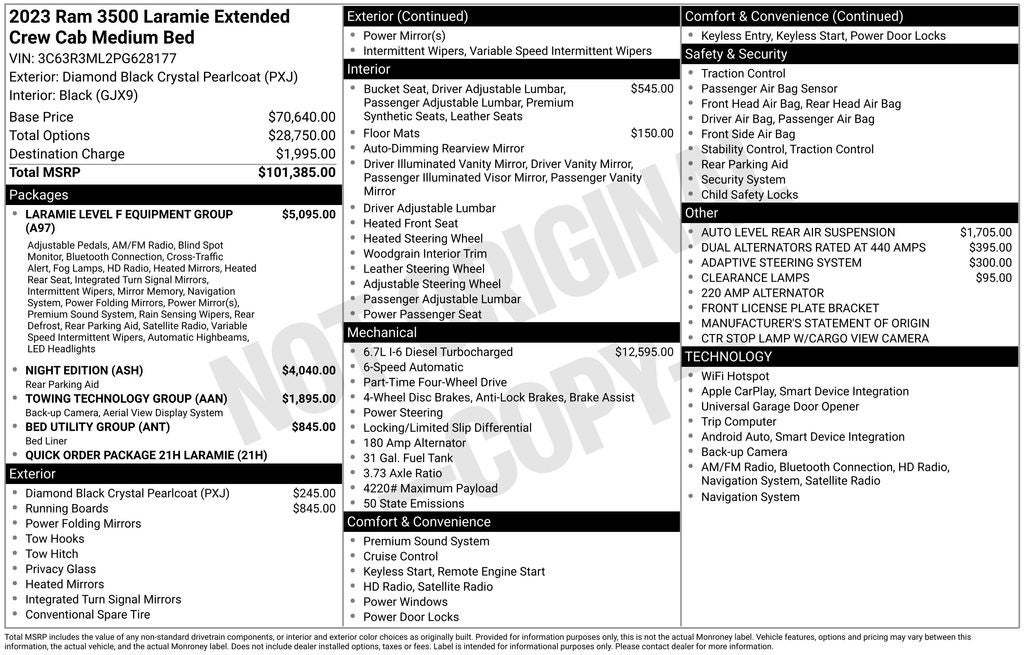 Visit our showroom today to take this exceptional 2023 Ram 3500 Laramie for a test drive. We're confident you'll be impressed by its impressive performance, advanced features, and exceptional value. Let us help you find the perfect truck to meet your needs and exceed your expectations.