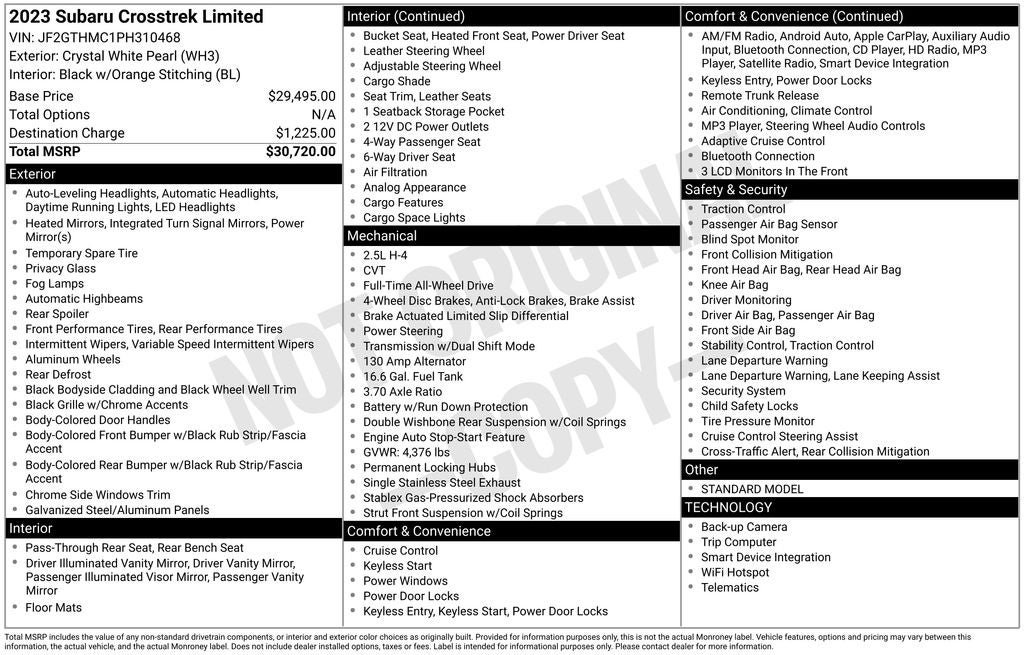 - Radio: Subaru STARLINK 8.0" Multimedia Plus System