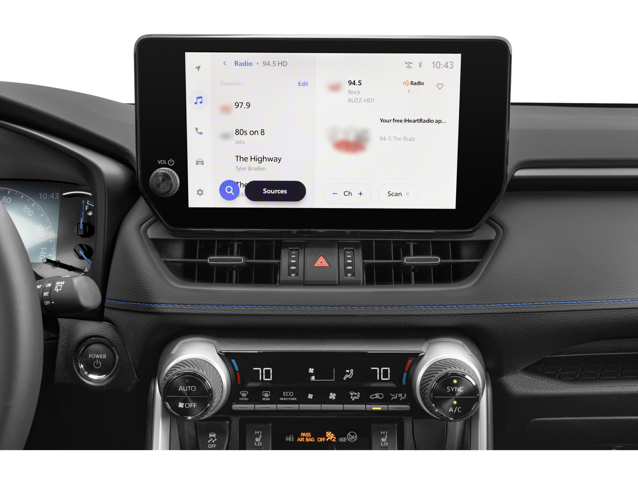 This 2023 Toyota RAV4 Hybrid comes equipped with, 2.5L 4-Cylinder, 4-Wheel Disc Brakes, 6 Speakers, ABS brakes, Air Conditioning, Alloy wheels, AM/FM radio: SiriusXM, Auto High-beam Headlights, Auto-dimming Rear-View mirror, Automatic temperature control, Axle Ratio: TBD, Brake assist, Bumpers: body-color, Delay-off headlights, Driver door bin, Driver vanity mirror, Dual front impact airbags, Dual front side impact airbags, Electronic Stability Control, Emergency communication system: Safety Connect (1-year trial), Four wheel independent suspension, Front anti-roll bar, Front Bucket Seats, Front Center Armrest, Front dual zone A/C, Front reading lights, Fully automatic headlights, Garage door transmitter: HomeLink, Heated door mirrors, Heated Front Seats, Heated front seats, Illuminated entry, Knee airbag, Lane Departure Warning System, Leather Shift Knob, Low tire pressure warning, Occupant sensing airbag, Outside temperature display, Overhead airbag, Overhead console, Panic alarm, Passenger door bin, Passenger vanity mirror, Power door mirrors, Power driver seat, Power Liftgate, Power moonroof, Power steering, Power windows, Radio data system, Radio: AM/FM/XM Audio System, Rear anti-roll bar, Rear seat center armrest, Rear window defroster, Rear window wiper, Remote keyless entry, Security system, SofTex Seat Trim, Speed control, Speed-sensing steering, Split folding rear seat, Spoiler, Steering wheel mounted audio controls, Telescoping steering wheel, Tilt steering wheel, Traction control, Trip computer, Turn signal indicator mirrors, Variably intermittent wipers, Wheels: 18 x 7.0J Black-Painted Aluminum Alloy, 2.5L 4-Cylinder. 2023 Toyota RAV4 Hybrid XSE AWD eCVT 2.5L 4-Cylinder