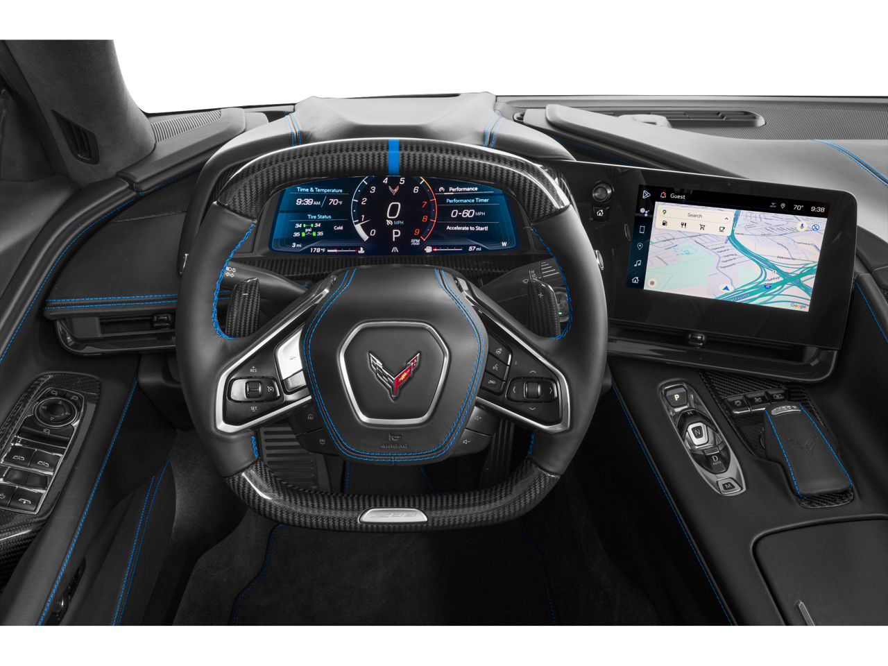 - Carbon fiber and sueded microfiber-wrapped steering wheel