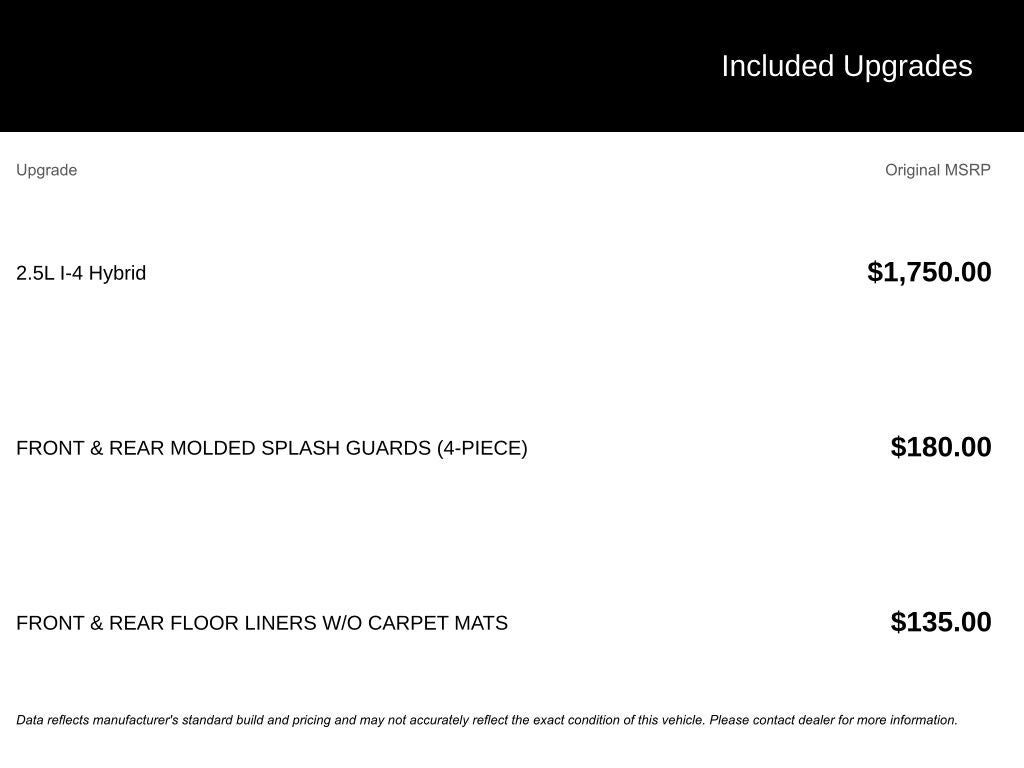 - 2.5L I-4 Hybrid engine with Auto Stop/Start technology