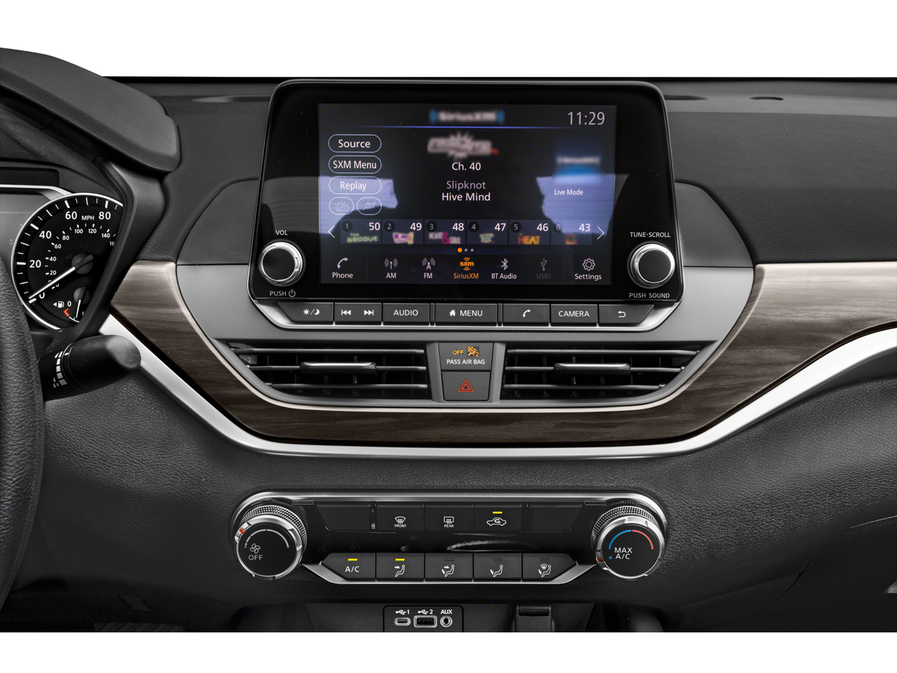 - Radio: AM/FM Audio System -inc: RDS, MP3 and aux-in, 6 speakers, NissanConnect featuring Apple CarPlay, Android Auto, 8" color display w/multi-touch control, 1 front illuminated USB port (type-C) for compatible devices, SiriusXM radio, Bluetooth® hands-free phone system, streaming audio via Bluetooth®, hands-free text messaging assistant, Siri Eyes Free and Google Assistant voice recognition