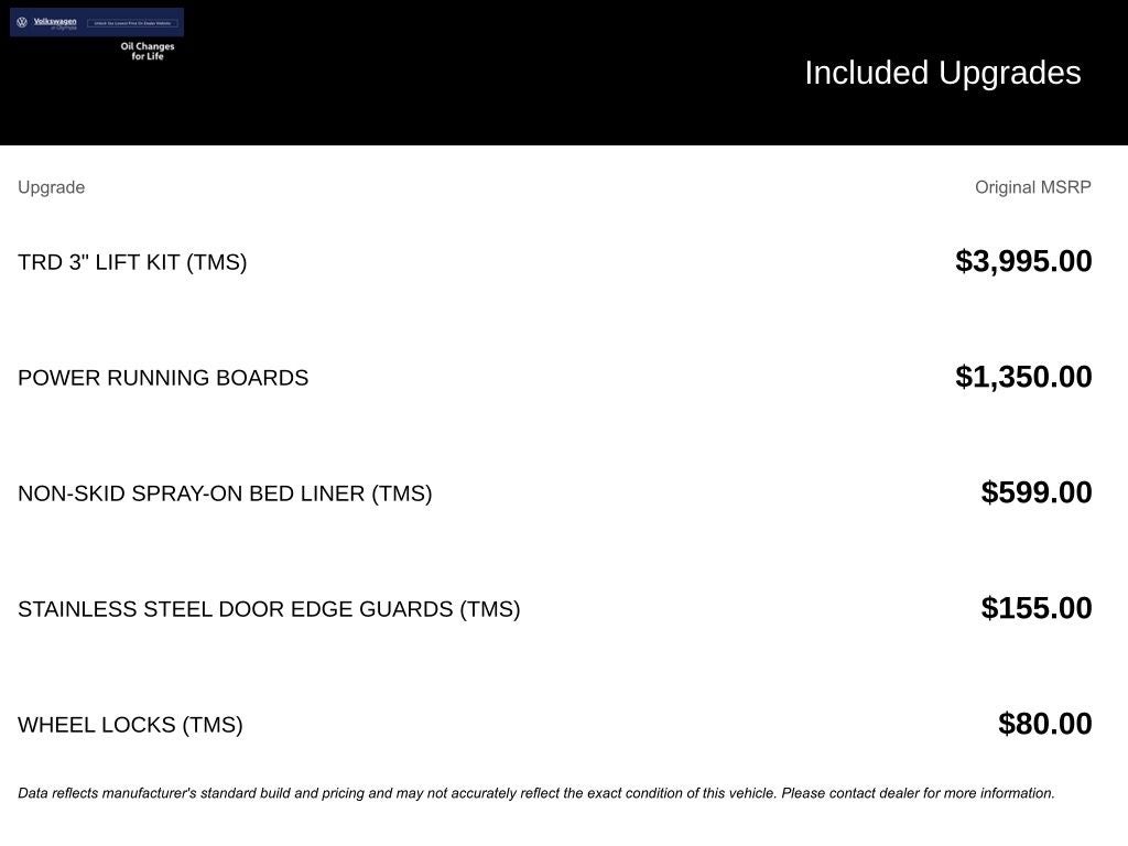 Elevating the driving experience, this Tundra is equipped with a TRD 3 Lift Kit, Power Running Boards, a Non-Skid Spray-On Bed Liner, and Stainless Steel Door Edge Guards. The 1794 Grade Package and TRD Off-Road Package further enhance its capabilities, ensuring you can tackle any terrain with confidence.