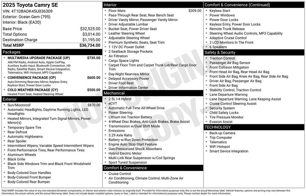 - Radio: Toyota Audio Multimedia w/8" Touchscreen